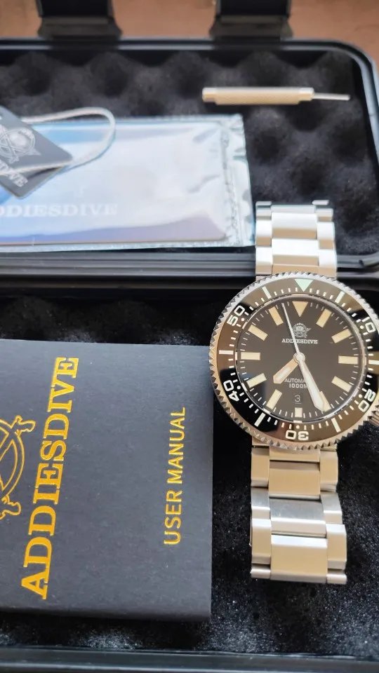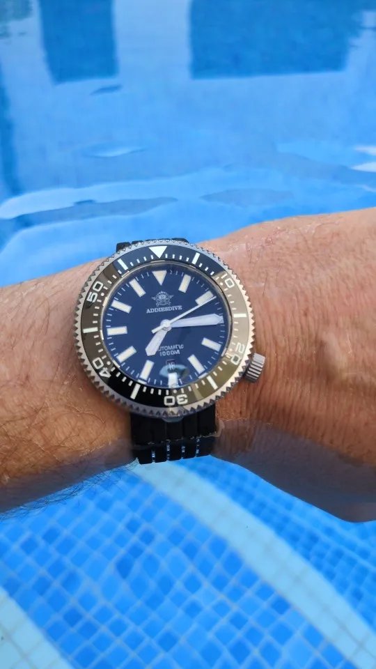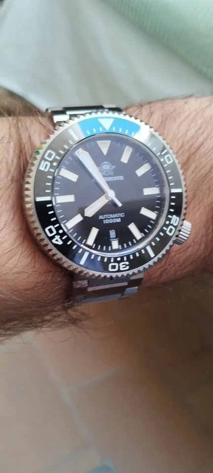 The MY-H6 Puck from Addiesdive is an exceptional watch! I was strongly doubtful about the purchase due to the size. Then, after seeing several video reviews and positive comments and taking advantage of AE discounts, I decided and am happy with it. Certainly, it is an ambitious and heavy watch, but by omitting the bracelet and temporarily replacing it with a silicone strap, it is easily worn and does not appear excessive on a wrist like mine that is 17 cm. The finishes are of excellent quality: satin finish, bezel and its function, case back, crown and its function, indexes, dials, and the dial itself are of superior quality. The lumens are sensational: in the dark it seems to light up. The movement is quite well regulated, for now it loses about 6 seconds per day. We'll see how it behaves in the future, I'll update the evaluation in a few weeks if necessary. The delivery was precise and on time. Therefore, I highly recommend the purchase and the seller. 👍