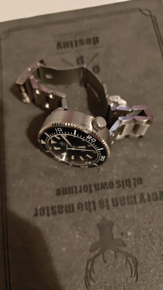 Solid watch very beautiful simple but functional without frills you can clearly see the night hands for now it works well although the automatics are not precise for diving we'll see if I won't go to 1000 meters.