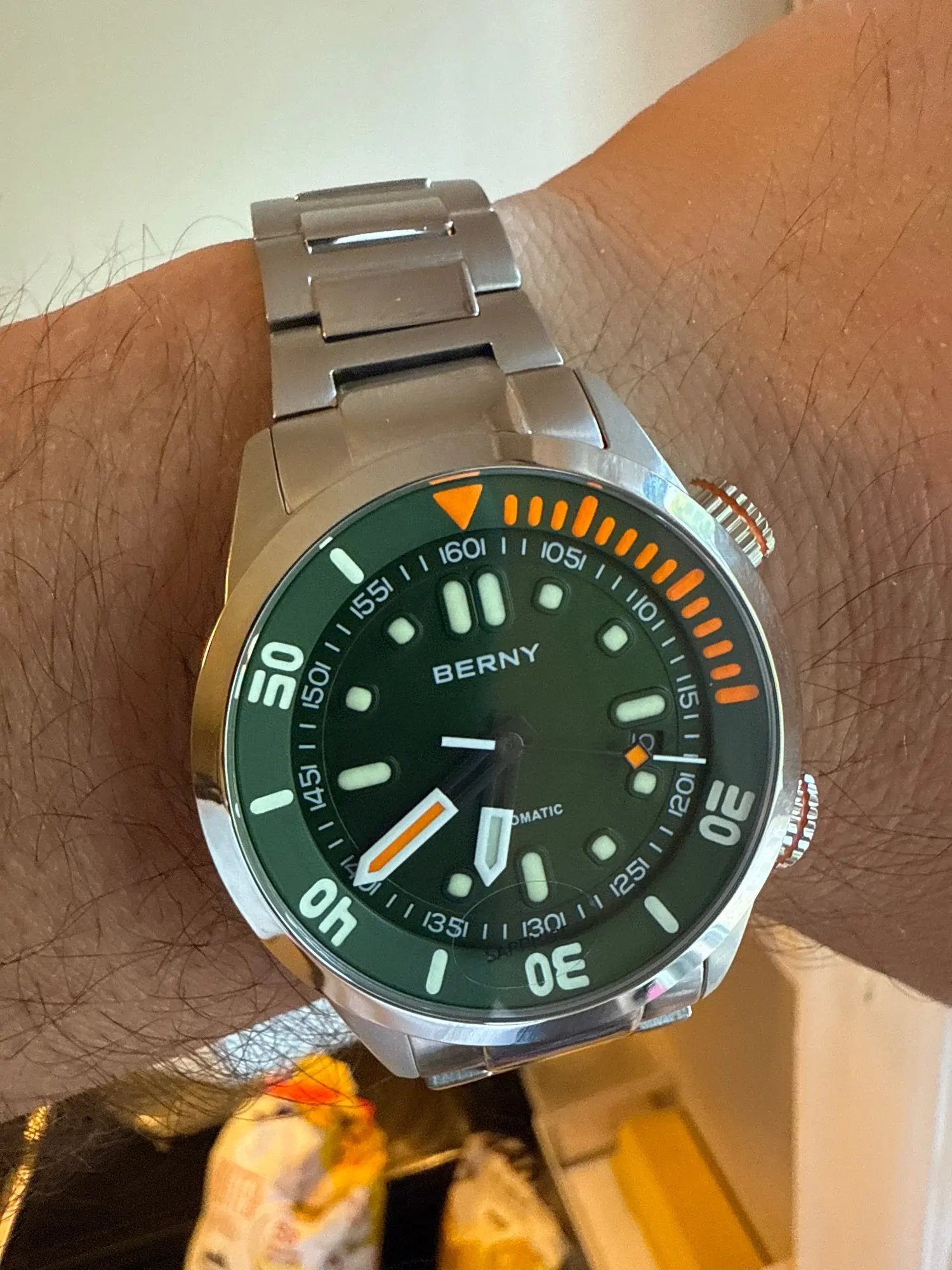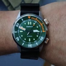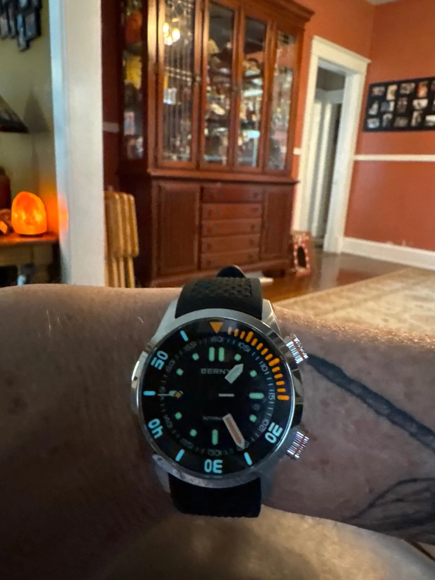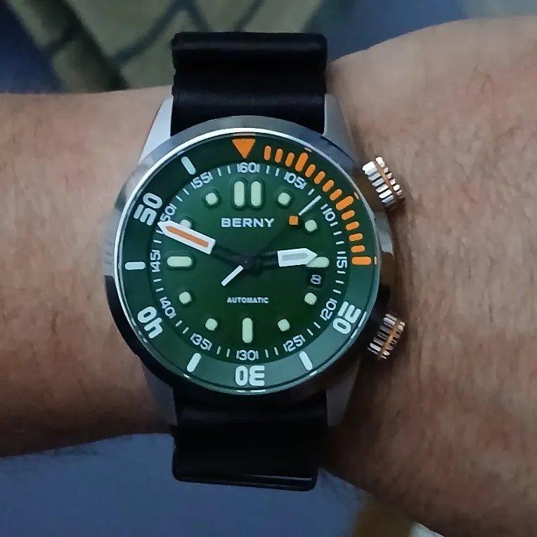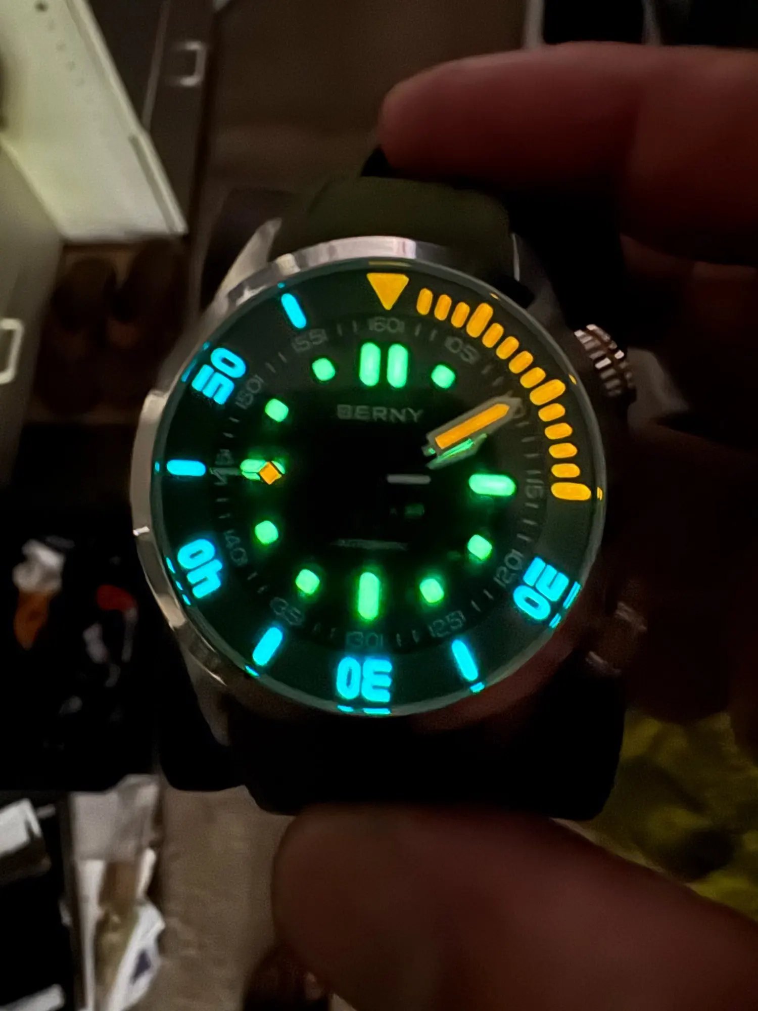 Love the berny dive watch! Beautiful and bright tri-color lume that i can’t take my eyes off! Third berny and very happy!