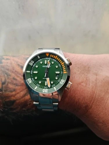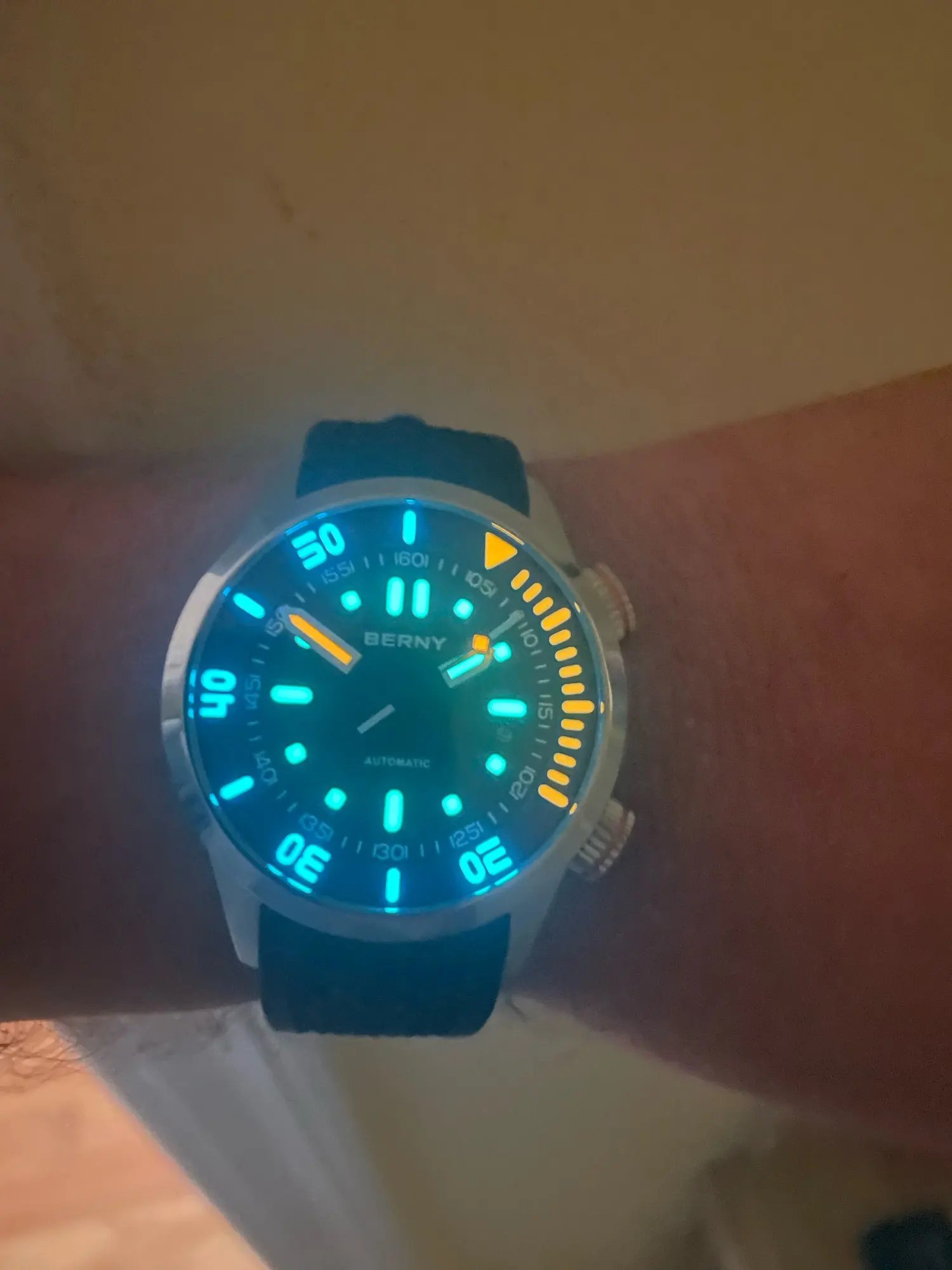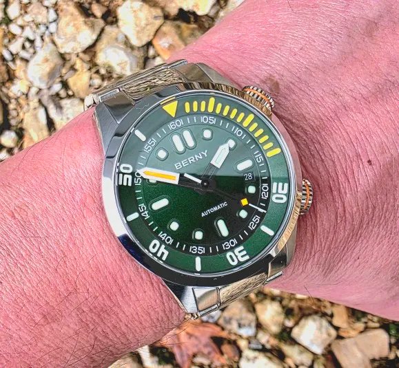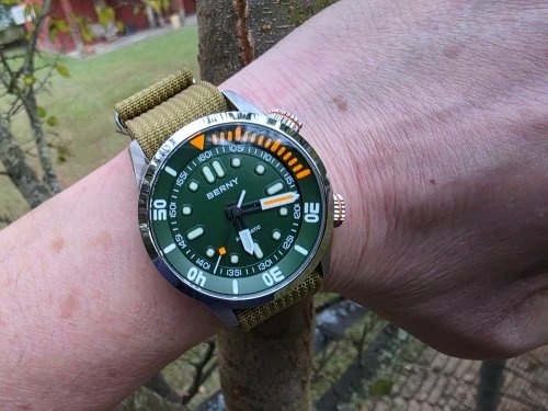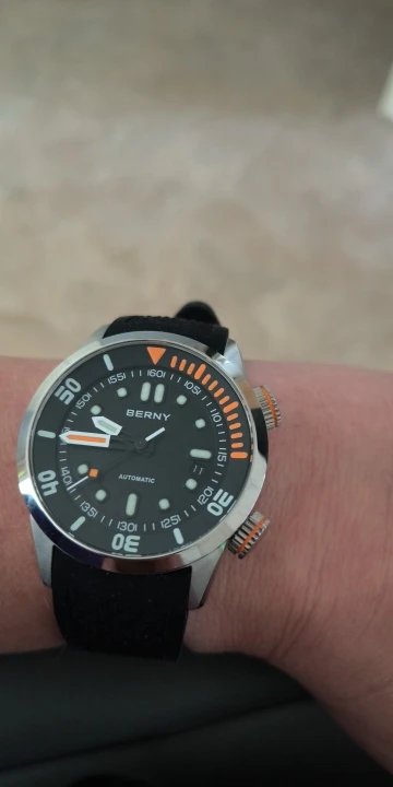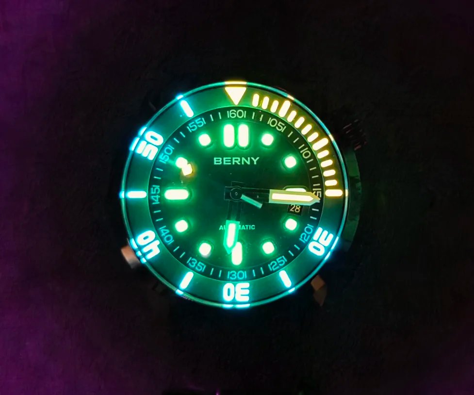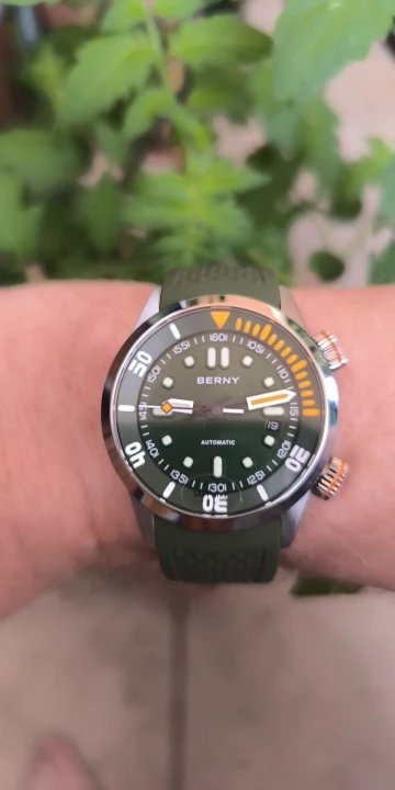 Love the berny dive watch! Beautiful and bright tri-color lume that i can’t take my eyes off! Third berny and very happy!