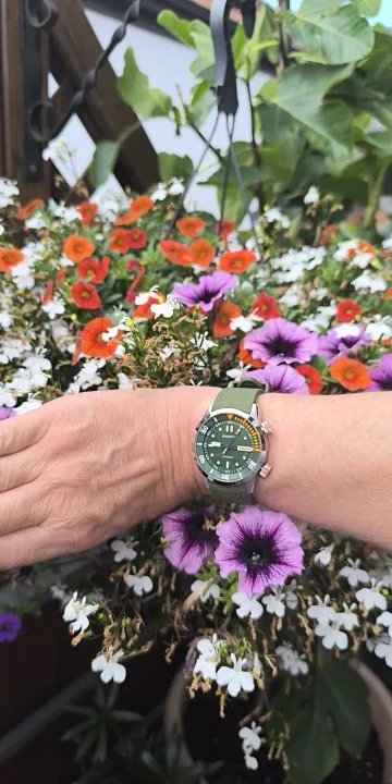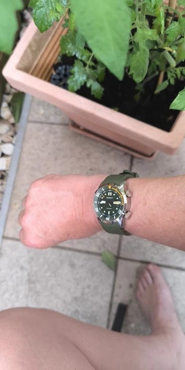 Great looking dial and the rubber strap feels excellent. Greatest bargain out there.