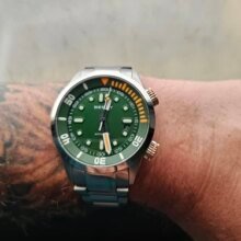 Love this watch! I'm a lumaholic! I have been wanting something that had bright lume that lasted more than 30 minutes and this is finally it! I have been wearing it for over a week and it hasn't disappointed the stainless steel bracelet fits perfectly after taking out one link The case is nicely polished with 22mm lugs,screw down case back and dual screw down crowns. The inner bidirectional bezel is very smooth and kinda neat to just fidget with. There's a slight noise in the movement,i don't think it's detrimental based upon other reviews but it is a slight annoyance. That's the only fault i can find with the overall build. If i were to nitpick i would say the date window could be a tad bigger but it's visible. The lume is the real star here though! It is very bright and will last all night long! I absolutely love it. Plus it's a tri colored lume with blue and orange on the bezel then green for the main dial. The minute and seconds hand is orange and the hour hand is green beautiful!