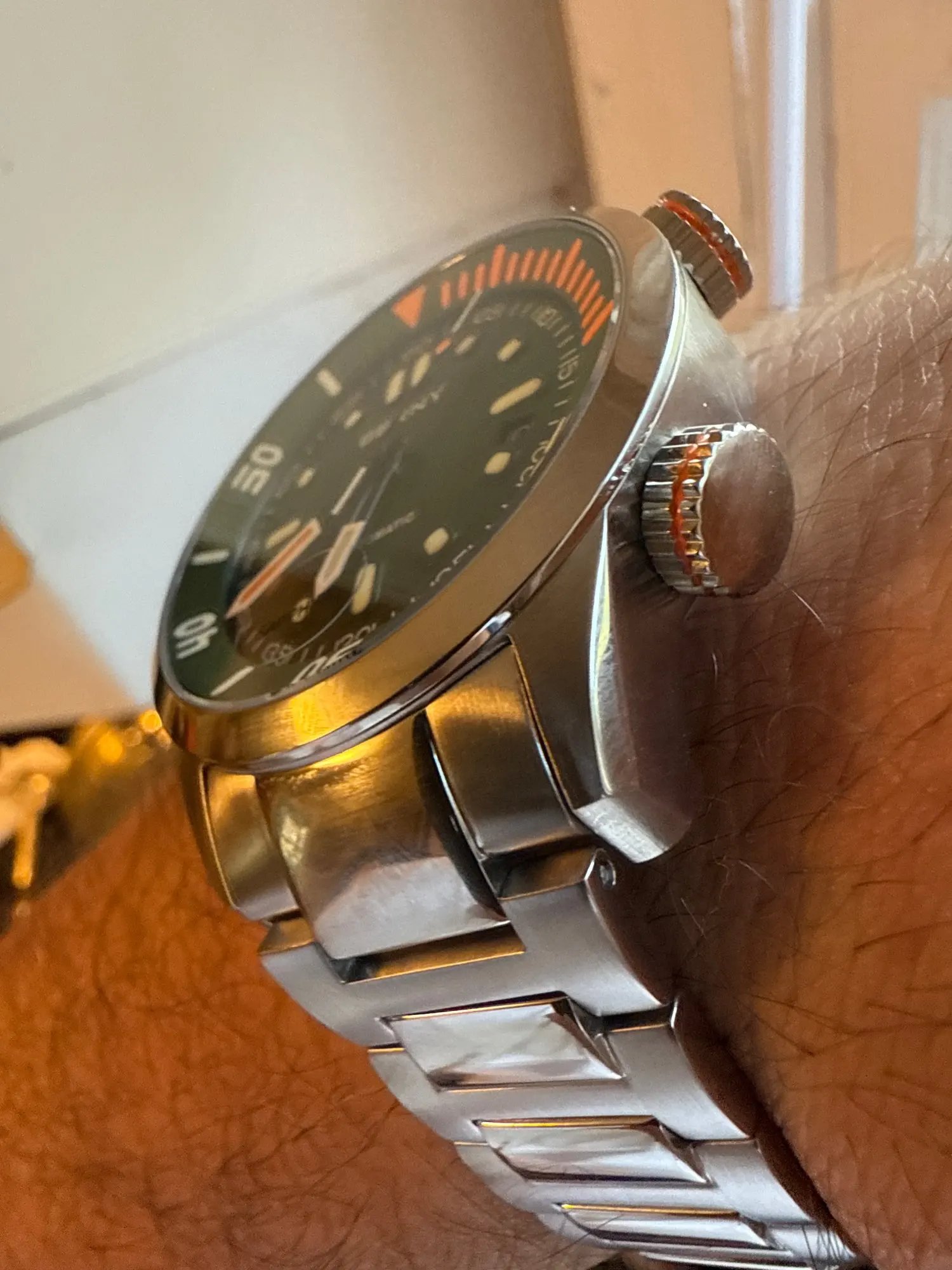 Item as described, fast shipment, well packaged. Buy this watch. You can stop reading here. I bought this on sale for 110 euro and honestly i feel like i stole something from berny. This watch punches way above that price range. It's a good deal at 200+ euros. It's a thick and heavy watch head and the knurling on the crowns is a wee bit sharp. Apart from that the quality is on par with main watch brands. Mine keeps time to +/- 0s/d on my timegrapher. This is more accurate out of the box than my heritage brand watches! And the lume is other worldly, a total lume monster. I love this watch and i am glad i bought it.