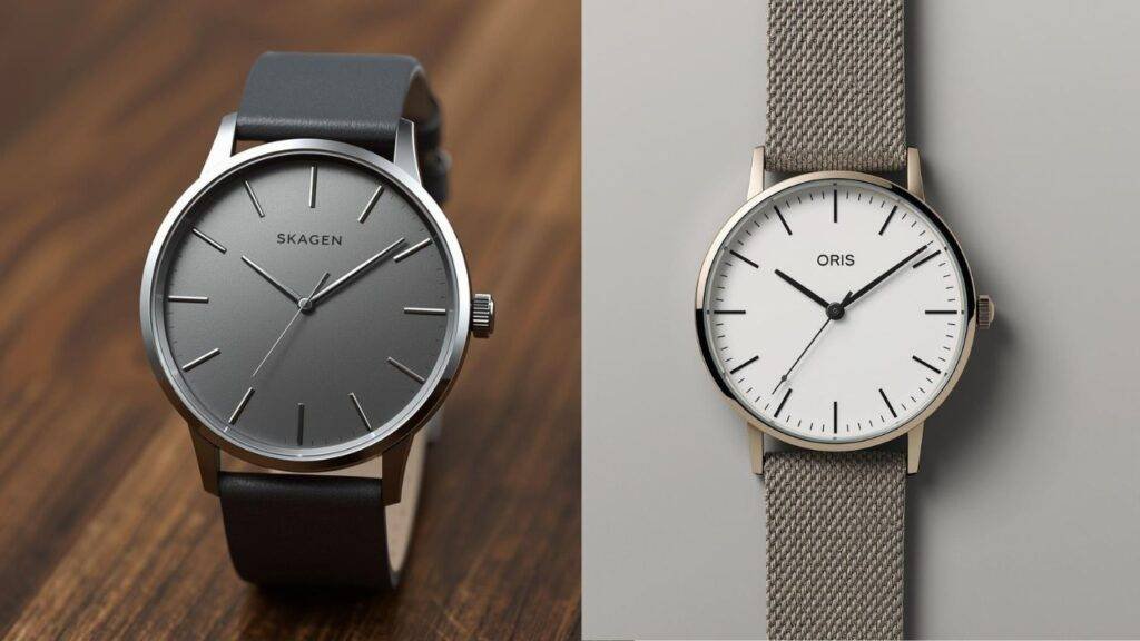 Oris moves into the luxury “real watches for real people” category. An Oris minimalist watch, such as the Artelier, might feature a small seconds hand and an automatic movement. While Skagen is focused on fashion-forward affordability, Oris emphasizes mechanical craftsmanship and a more sporty yet refined durability.