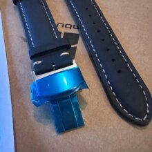 Dress your watch in boardroom leather. The CalfSkin Executive™ is cut from genuine calf-hide, vegetable-tanned for a tight grain, then saddle-stitched in contrasting thread—finished with a hidden butterfly clasp that sits flat under a cuff.