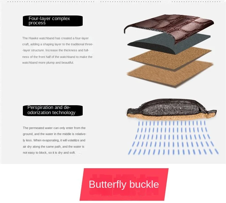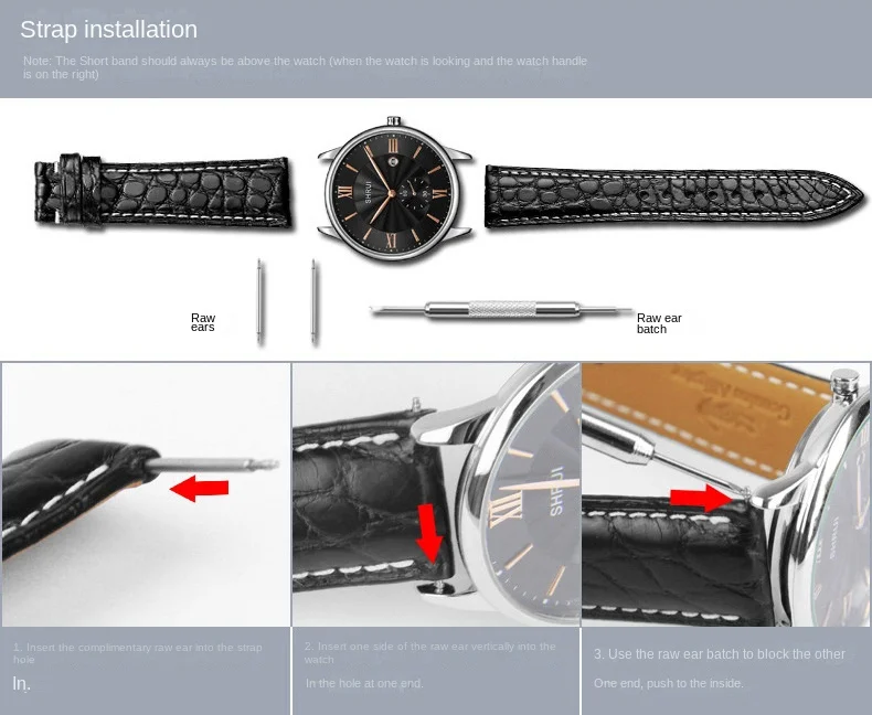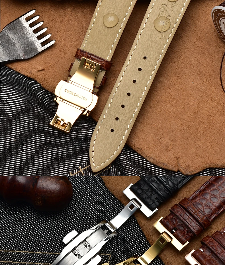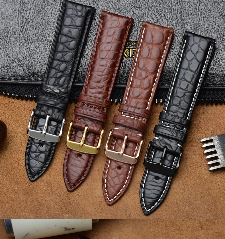The crocodile markings are clear and easily seen, which is what i wanted. The leather is supple straight out of packaging. Finishing is very good. The strap fits my wrist. I have given the strap a light polish with beeswax, and i expect that the leather will develop a gentle sheen wit wear. I am very pleased with this watch strap.