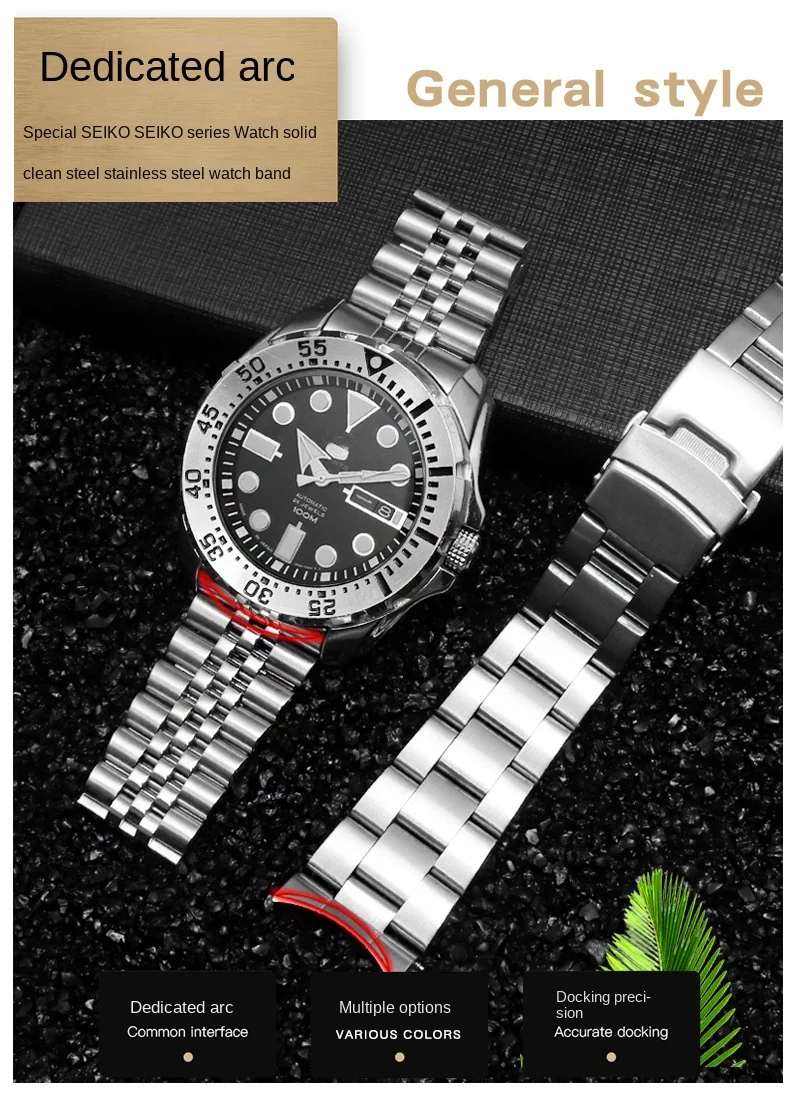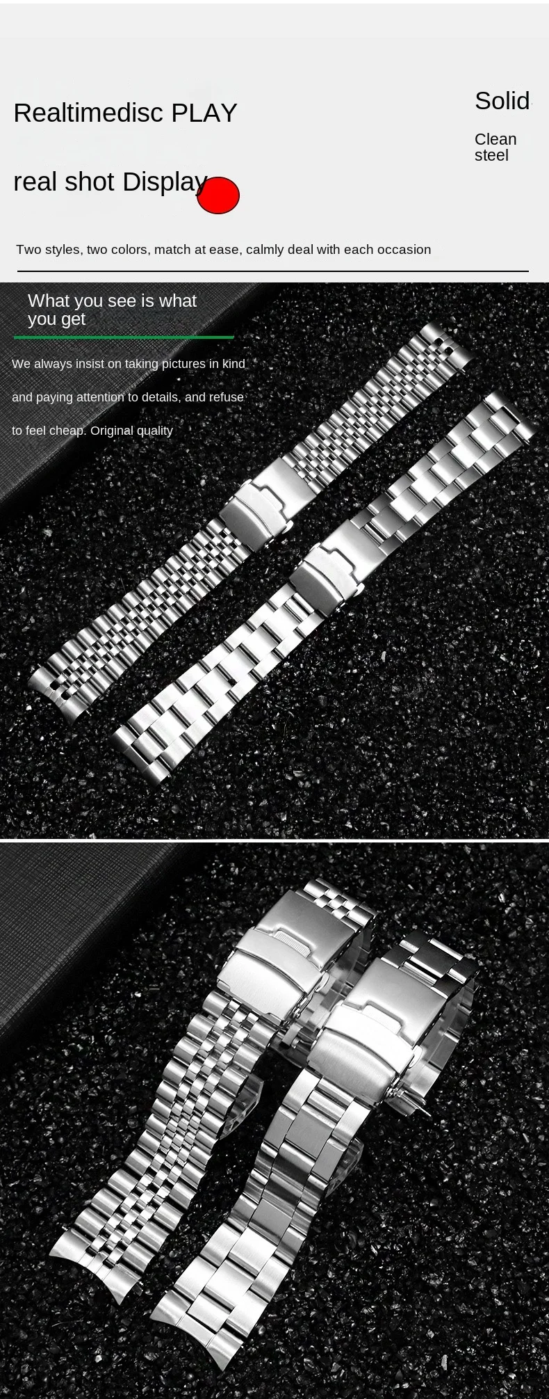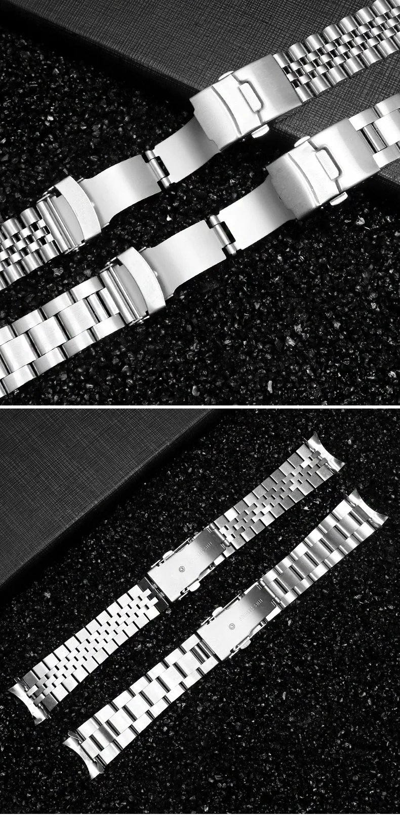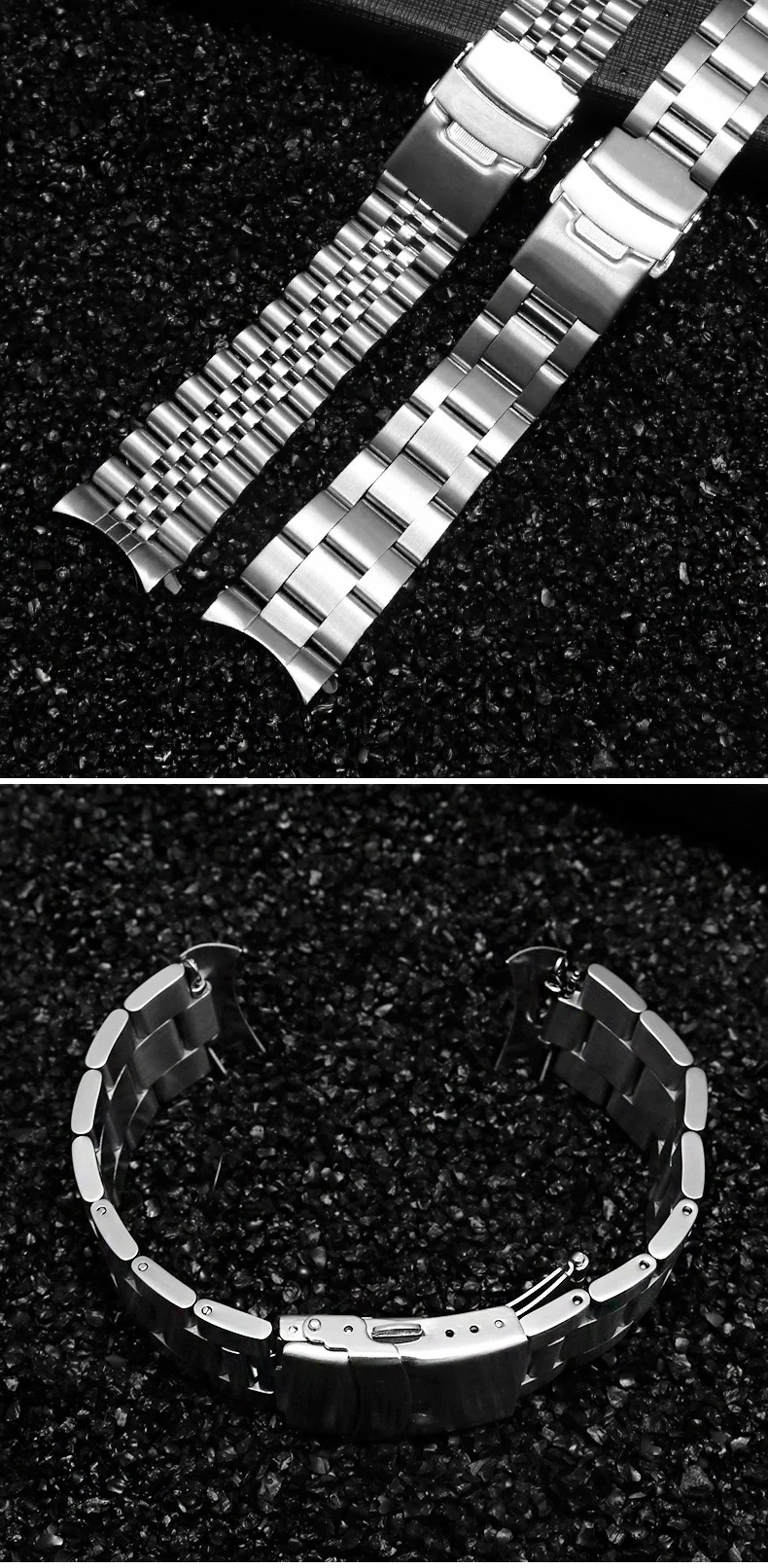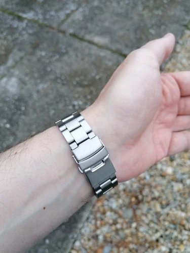Good stainless steel strap for the price, it is solid but lacks more weight, the final links are not solid and make a lot of noise when moving.