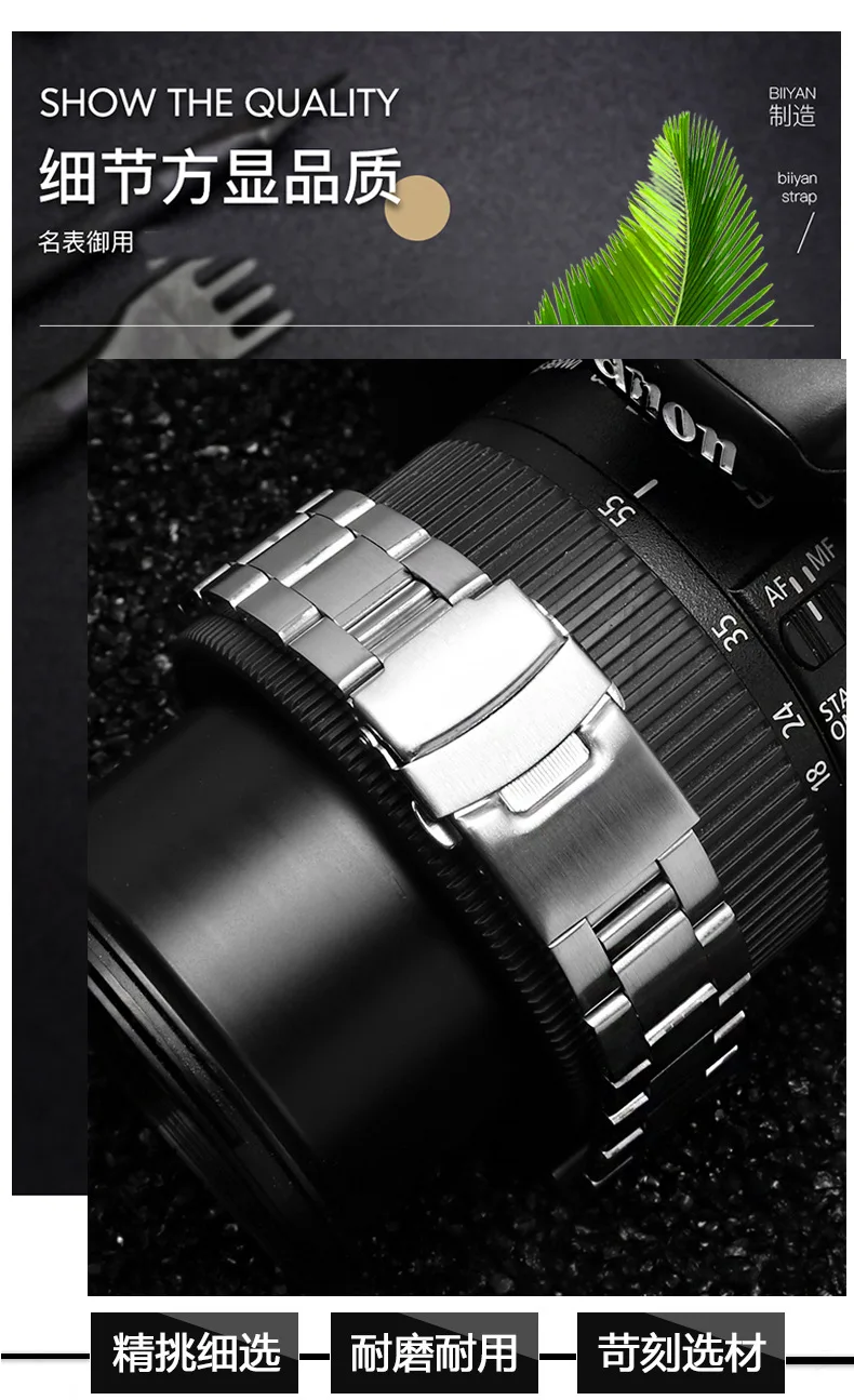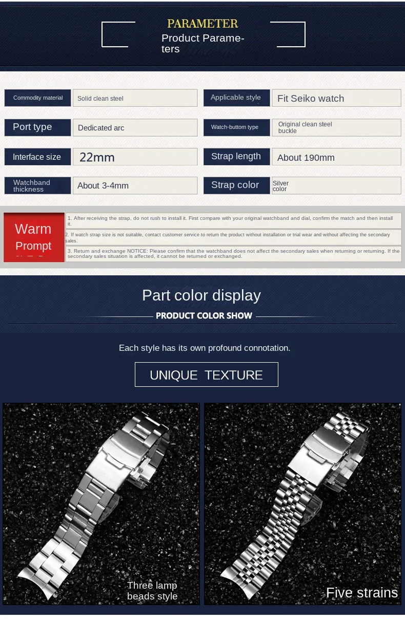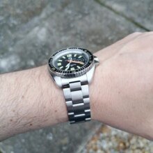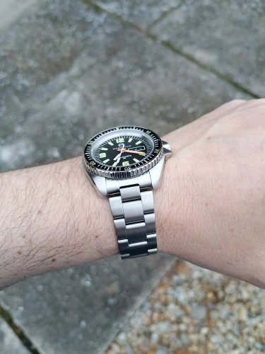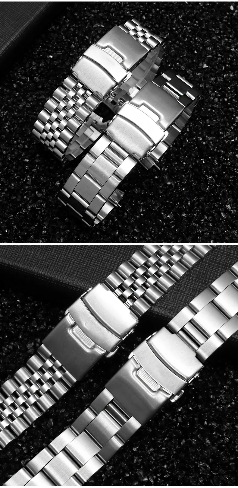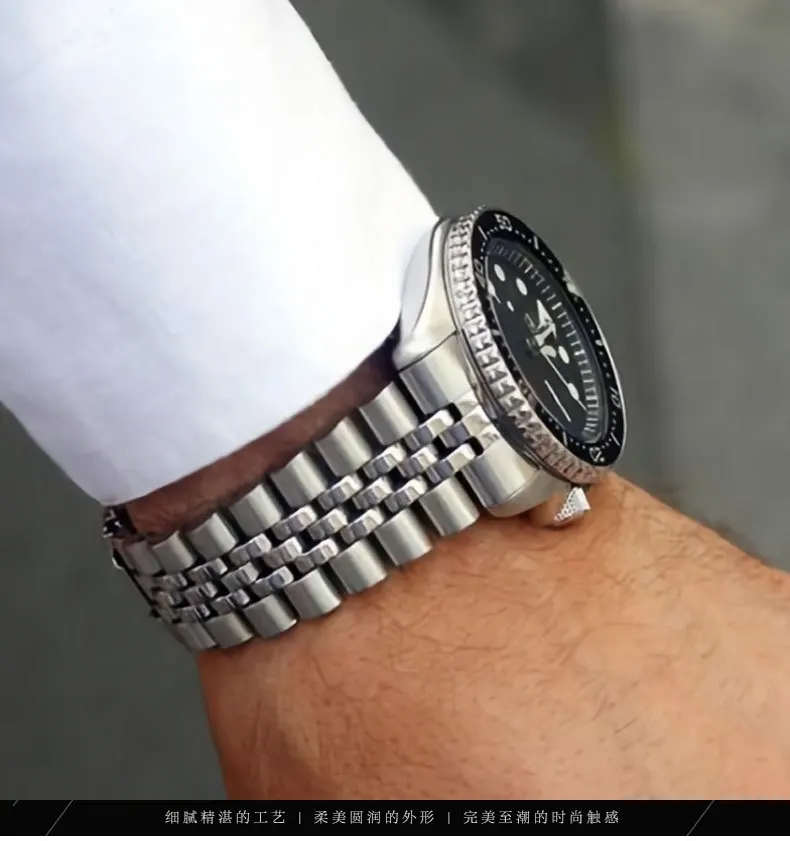 Good stainless steel strap for the price, it is solid but lacks more weight, the final links are not solid and make a lot of noise when moving.