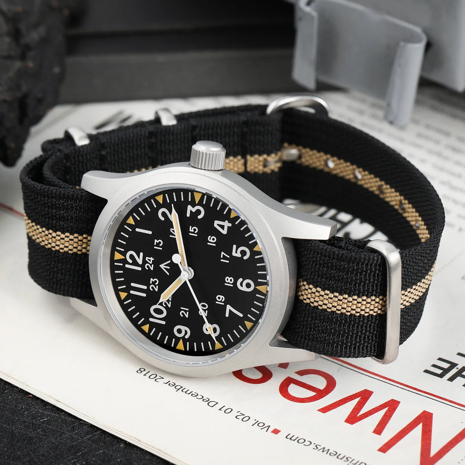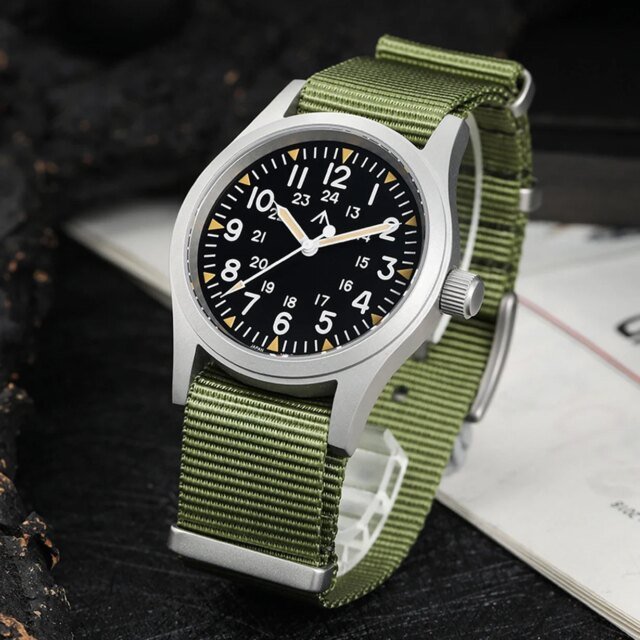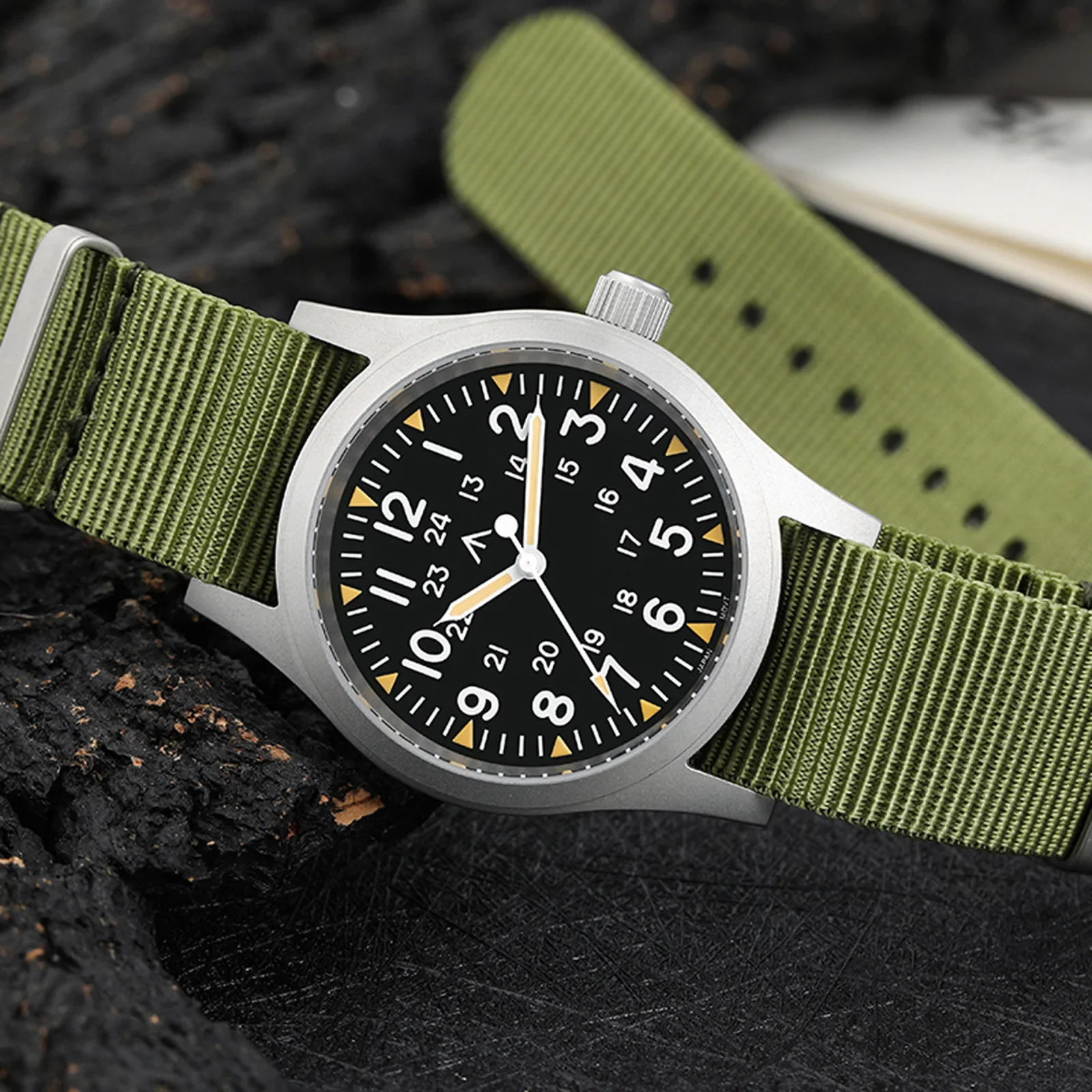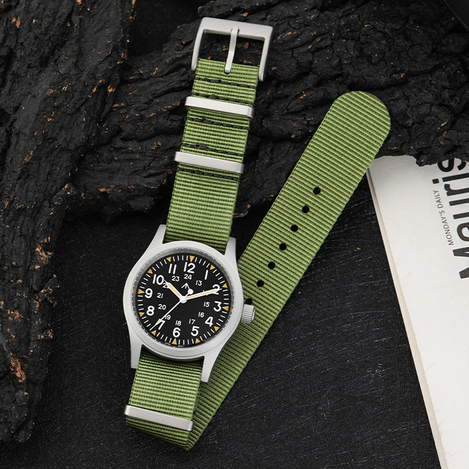 Militado ML05 Military Watch Miyota 2035 Movement Domed Sapphire Crystal C3 Green Luminous 10Bar Waterproof 38mm Vintage Watches