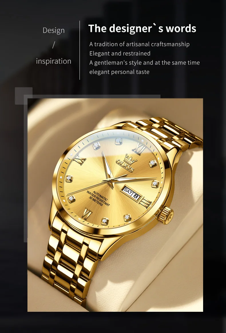 I bought this Olevs automatic watch for myself. I haven't worn it yet and I hope it will keep what it promises. It should be a high-quality and expensive watch that I purchased very carefully.