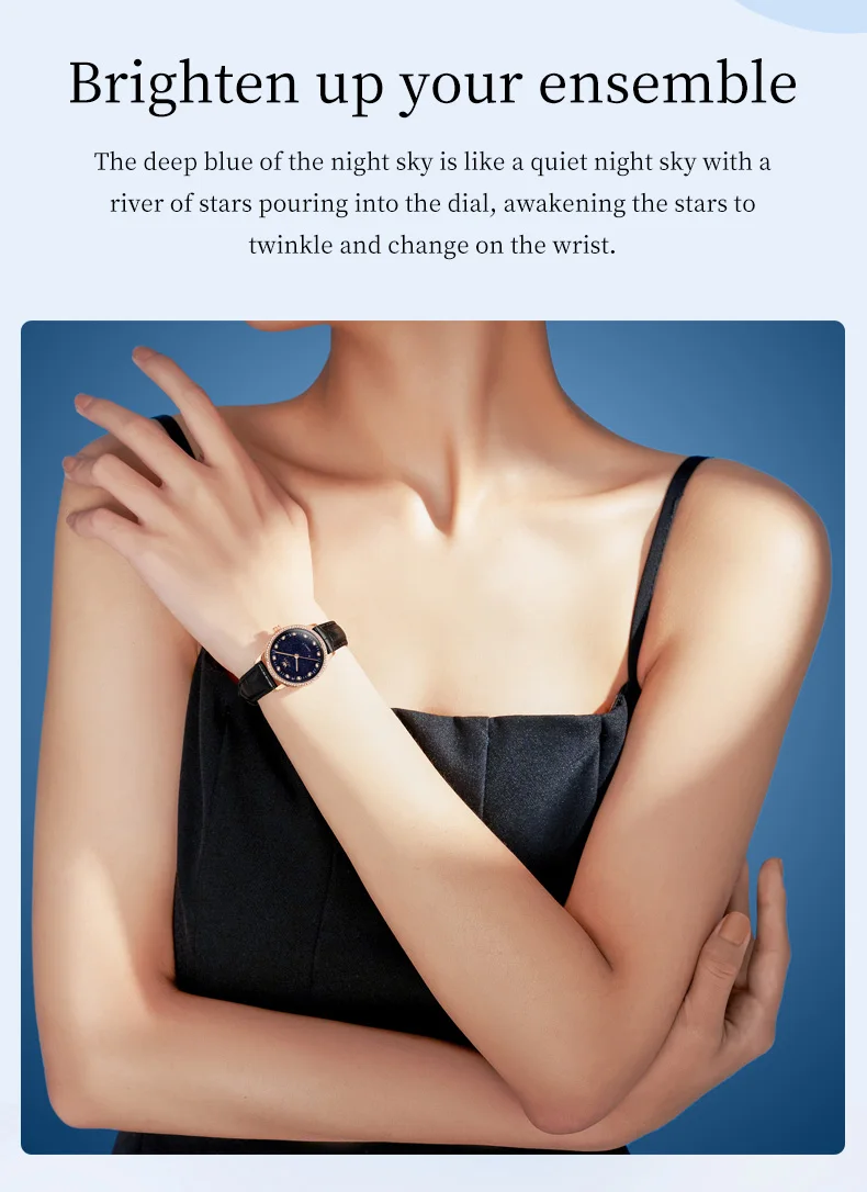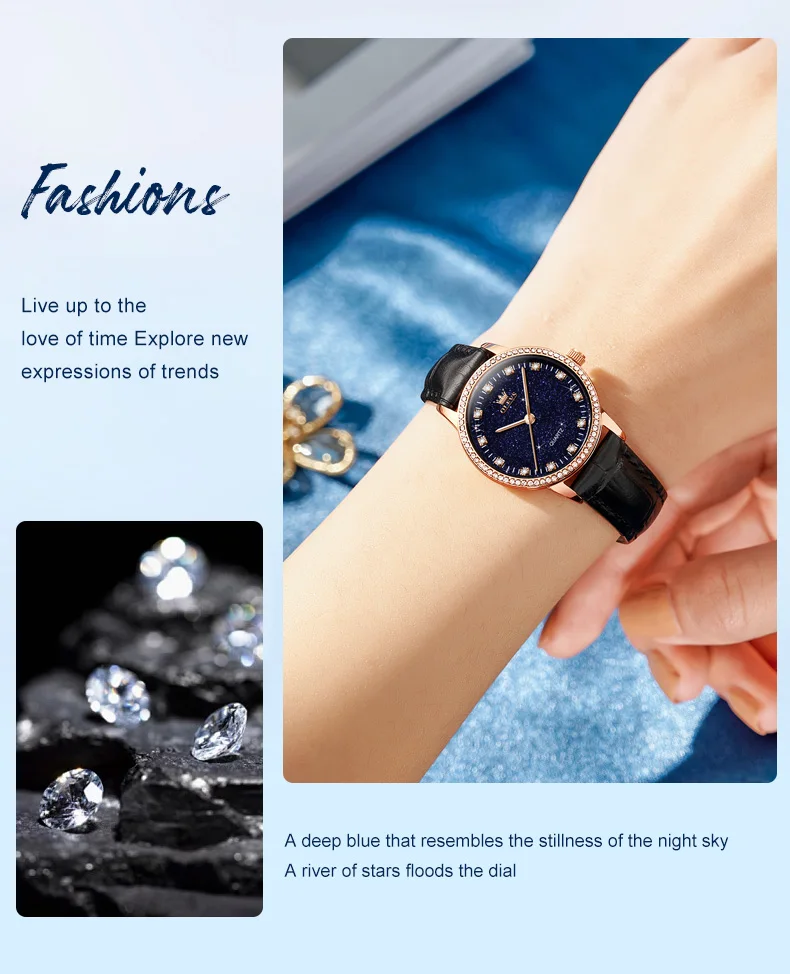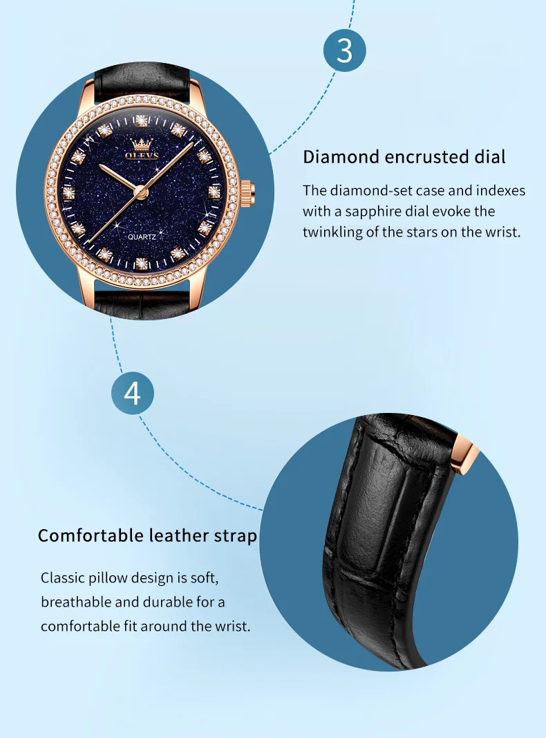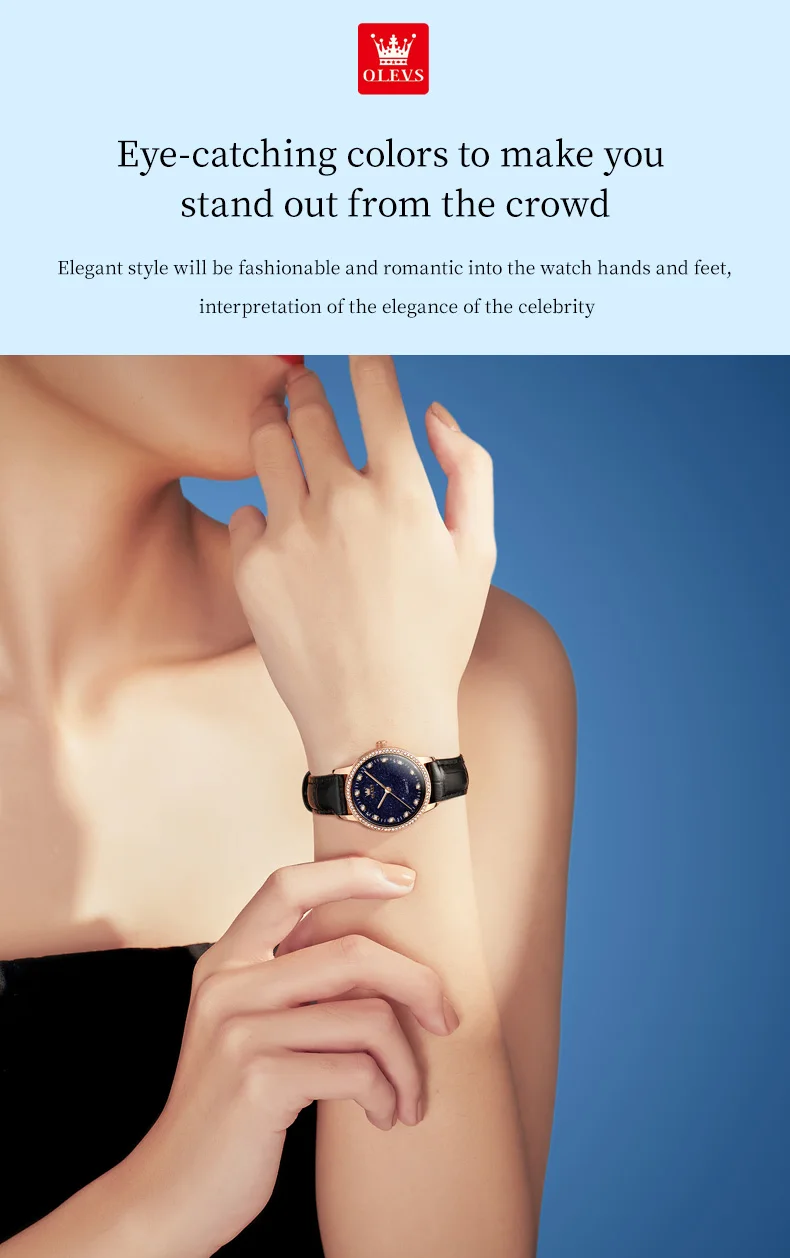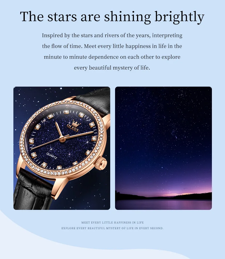 Give her the galaxy, certified by OLEVS. The Celestia™ Starlight combines authentic OLEVS build quality with a 3-D starry sky face that glitters like real constellations.