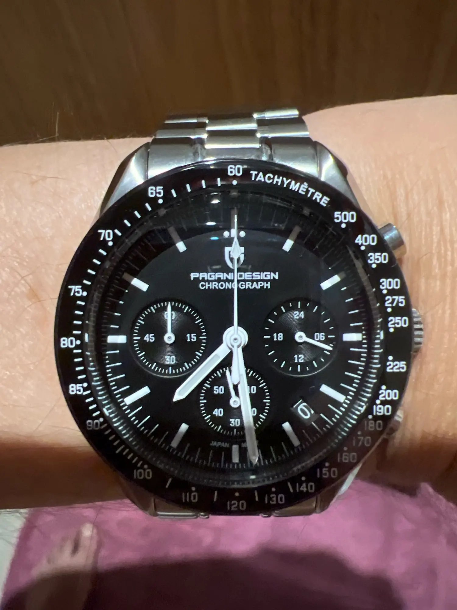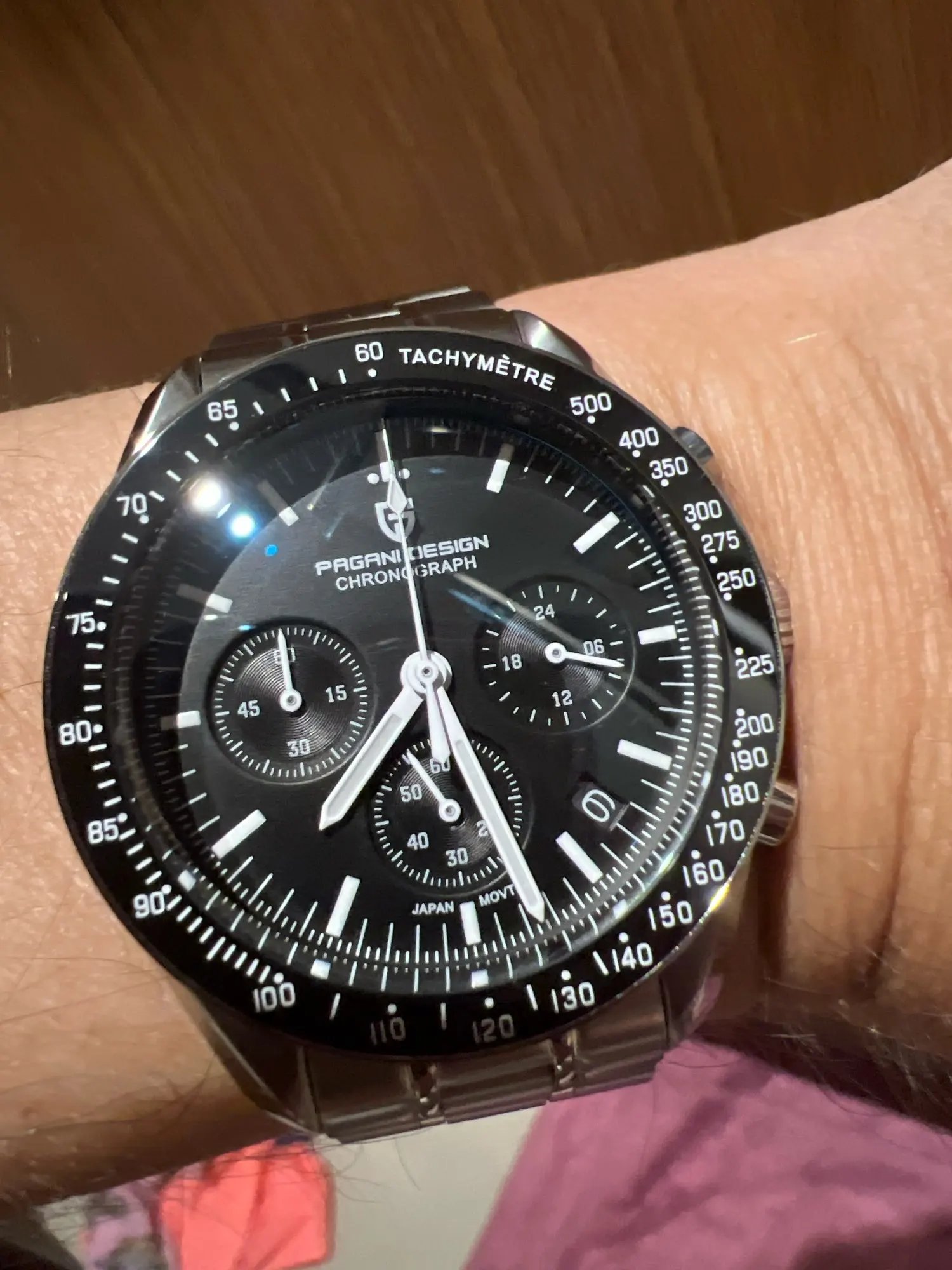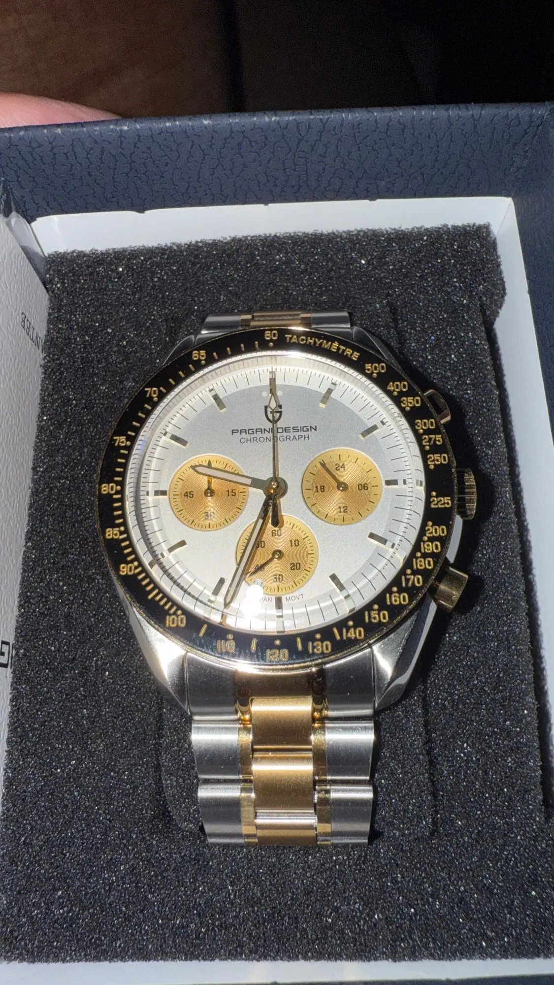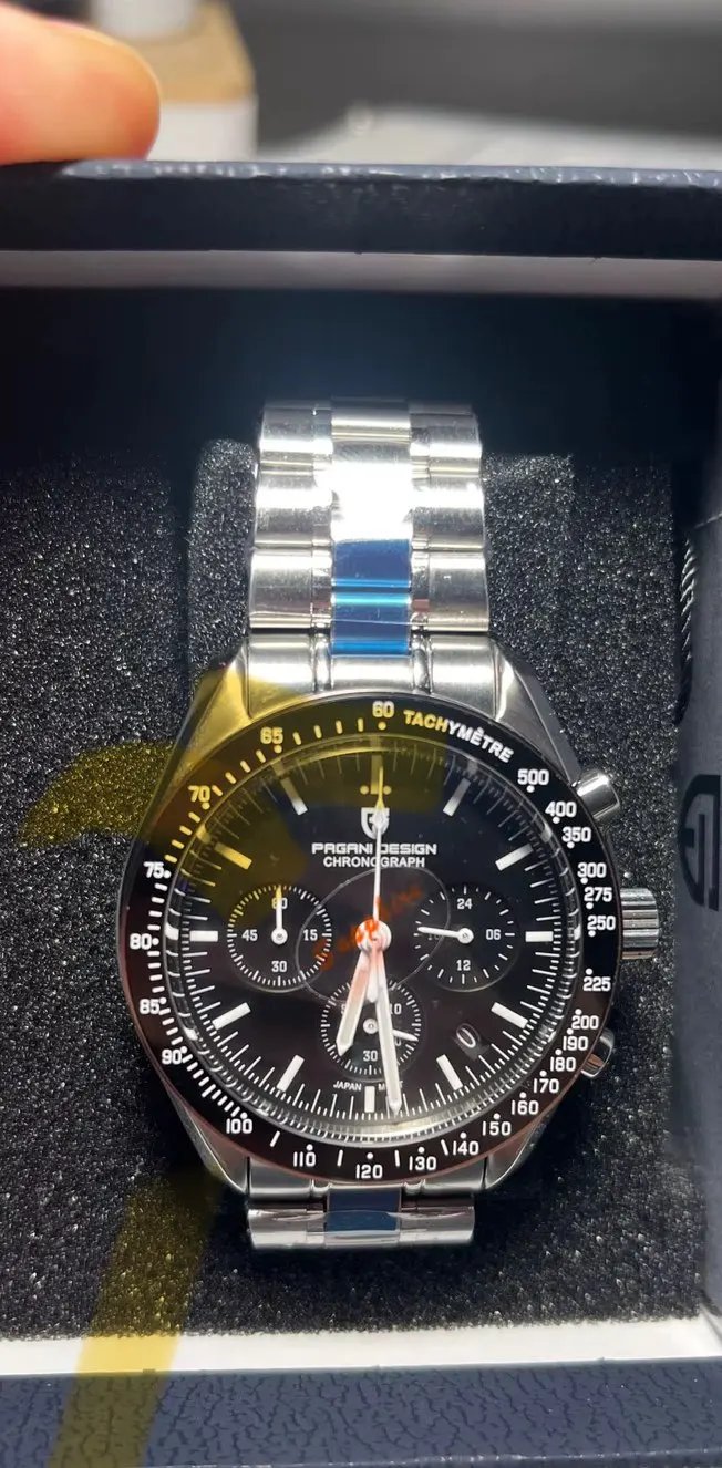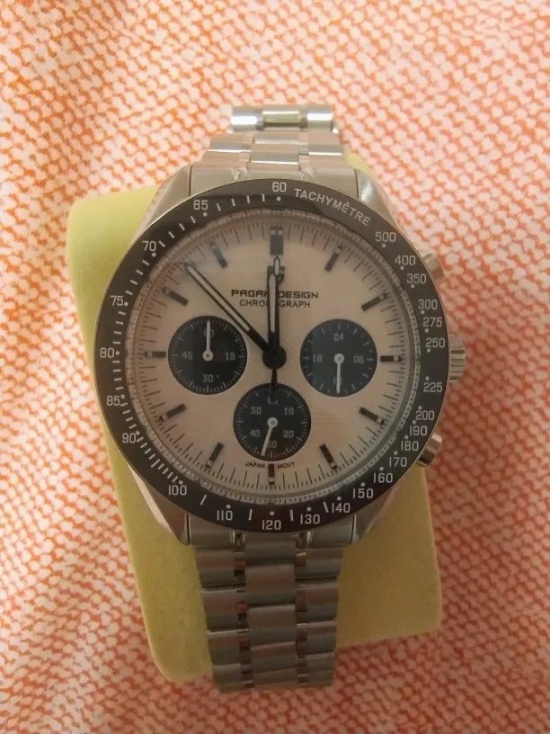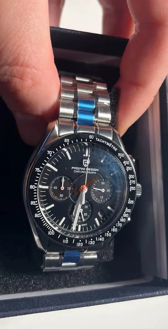 Perfect! delivered on time. Corresponds exactly to the description. I had already had the chance to appreciate the high quality of Pagani Design watches. Highly recommended purchase for enthusiasts looking for an homage to the Omega Speedmaster Moonwatch without spending a fortune. Obviously, I haven't tested the waterproofness at 100 meters depth!