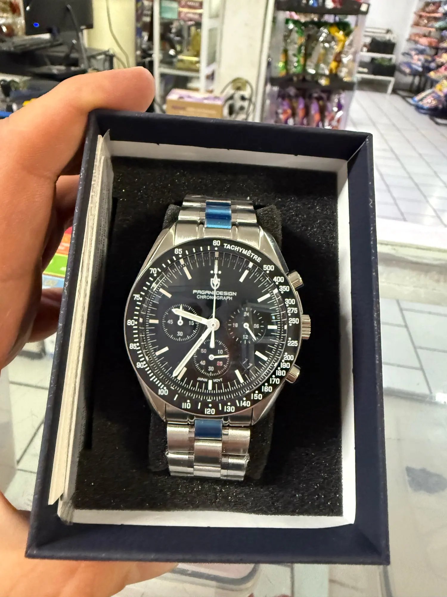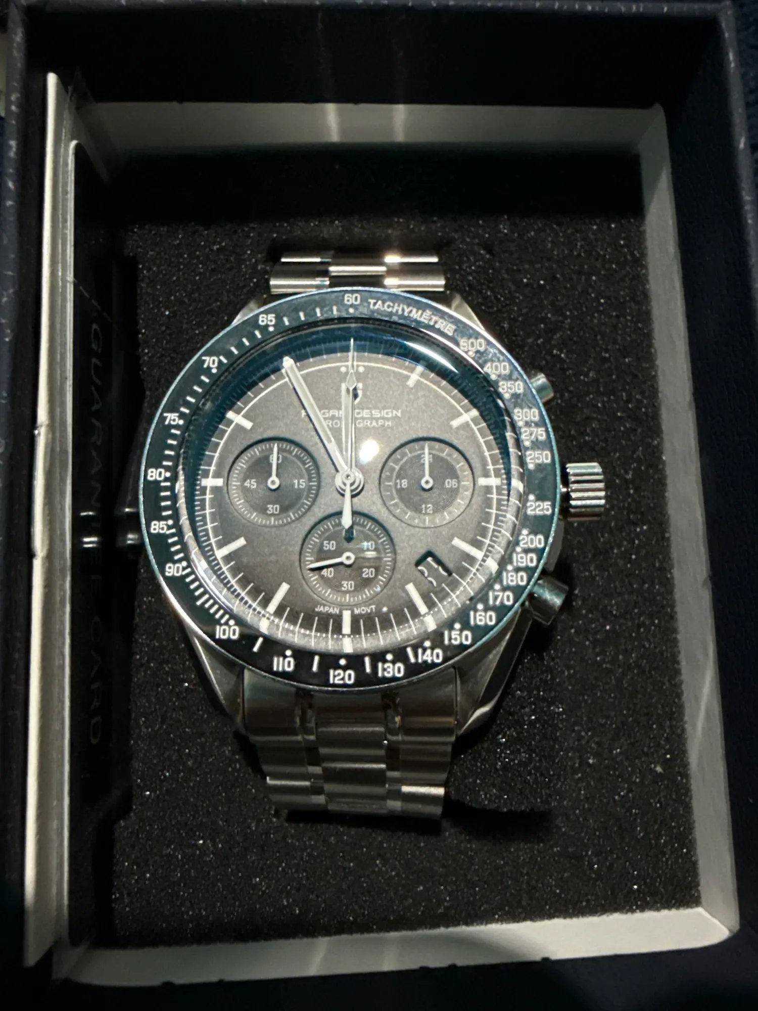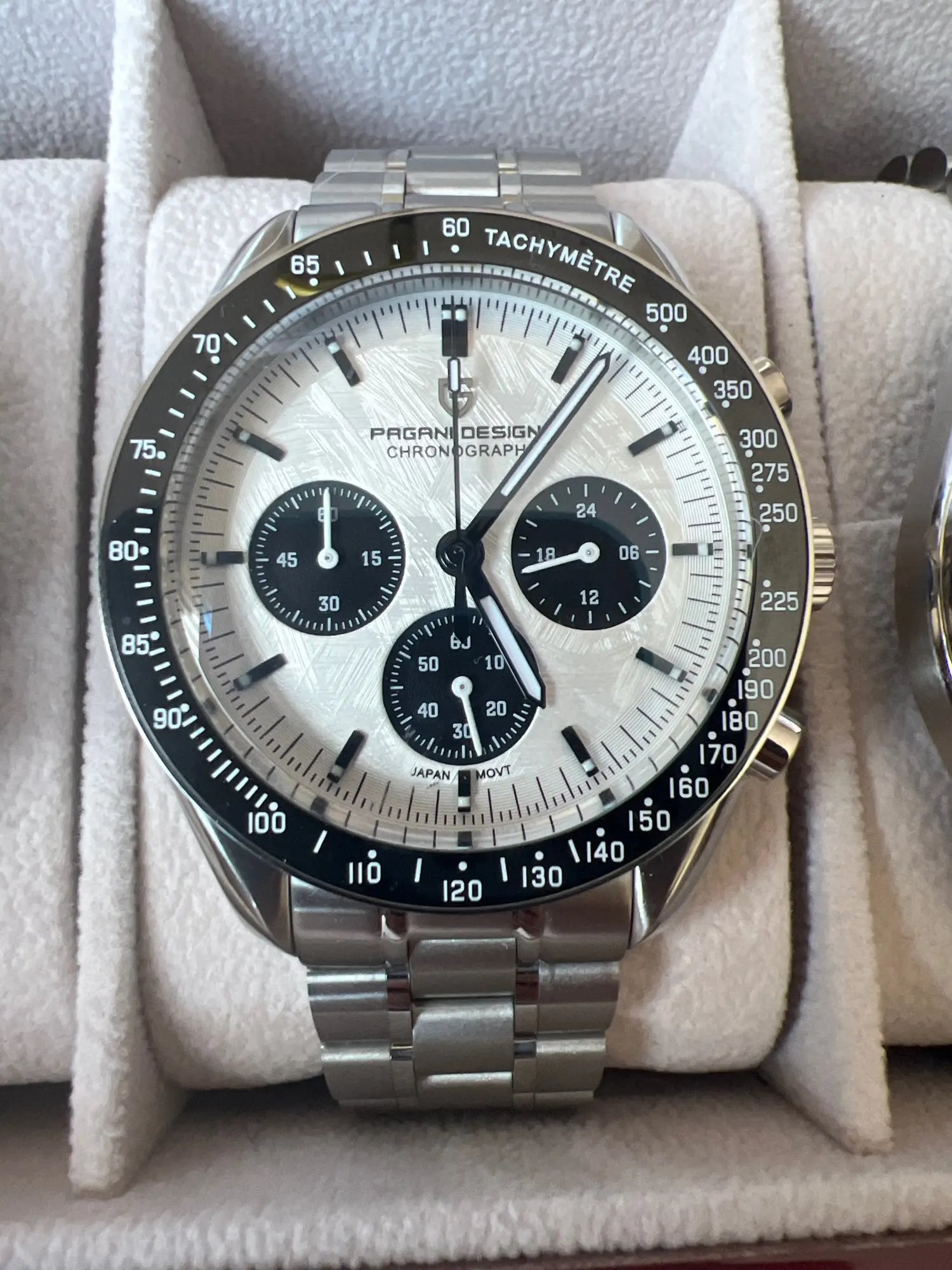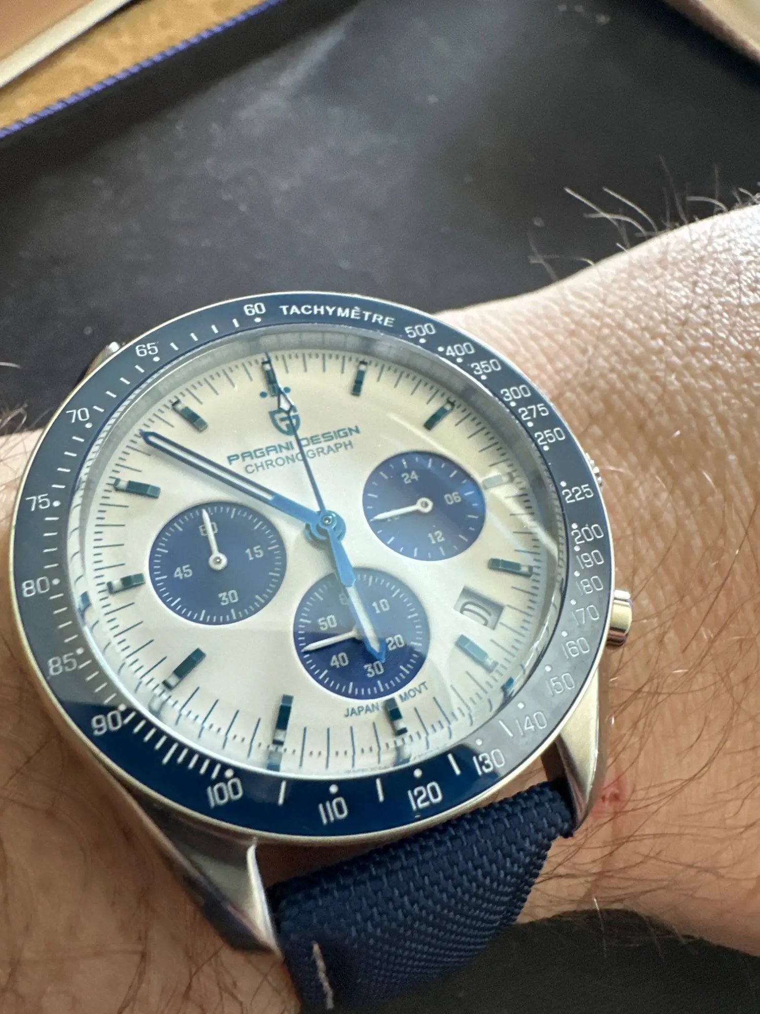 Perfect! delivered on time. Corresponds exactly to the description. I had already had the chance to appreciate the high quality of Pagani Design watches. Highly recommended purchase for enthusiasts looking for an homage to the Omega Speedmaster Moonwatch without spending a fortune. Obviously, I haven't tested the waterproofness at 100 meters depth!