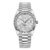 The PAGANI DESIGN DD-36 is offered in both gold and silver versions, along with various surface colors, showcasing different looks while maintaining elegance. The model features a 36mm diameter, which appeals to those who prefer a midsize watch; the 36mm variant is subtly styled and has a vintage feel. This year’s newest DD36 has been released in a striking combination of silver and ice blue. For the first time, it is paired with a triangular pit bezel crafted from silver, complemented by Roman numeral hour markers and an eye-catching blue second hand, enhancing the dial’s vibrancy and dynamics. Along with the heft of the silver case and the head-link chain bracelet, there’s also an unparalleled air of sophistication brought by the ice blue color.