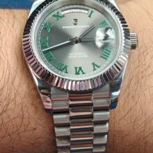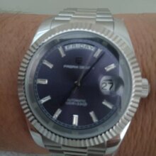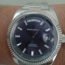 Beautiful watch. I been having issues having the day wheel change at the same time with the date. I have to used for a full day to see what happen. But looks very nice. And for the price, i think is a great watch
