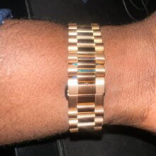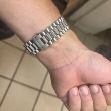 Beautiful looking watch at a great price. However, the screw in pins were very difficult to remove and i couldn’t get them all the way back in.