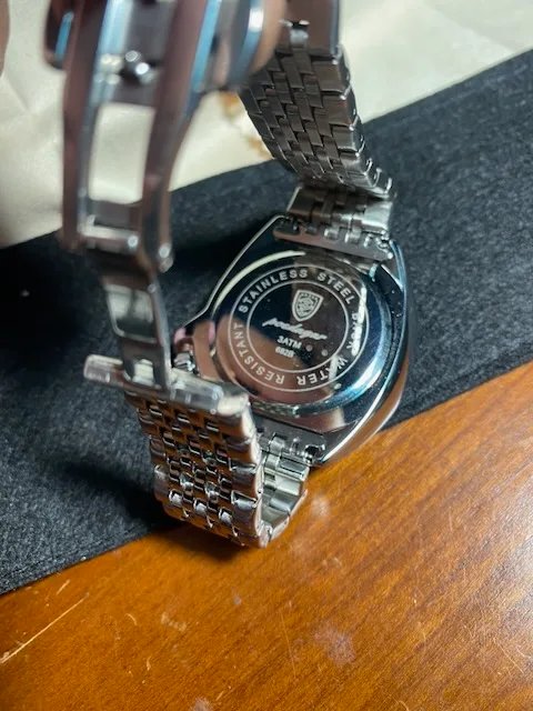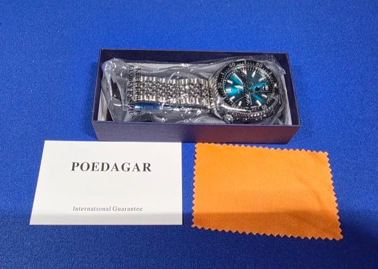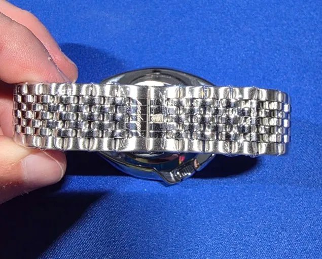 The box was poorly sealed. The product is of good quality; this is my second purchase. I recommend it to anyone who needs it. The bracelet itself had to be extended by one link. Since I couldn't find such bracelets for sale, I usually buy two identical watches and rearrange the links on them. That's what I advise you too. If a diver clasp fits the watch, I install it instead of the factory one. This watch does not have a diver clasp. When shortening the bracelet, while following safety techniques, slide your index finger between the bracelet and your hand...