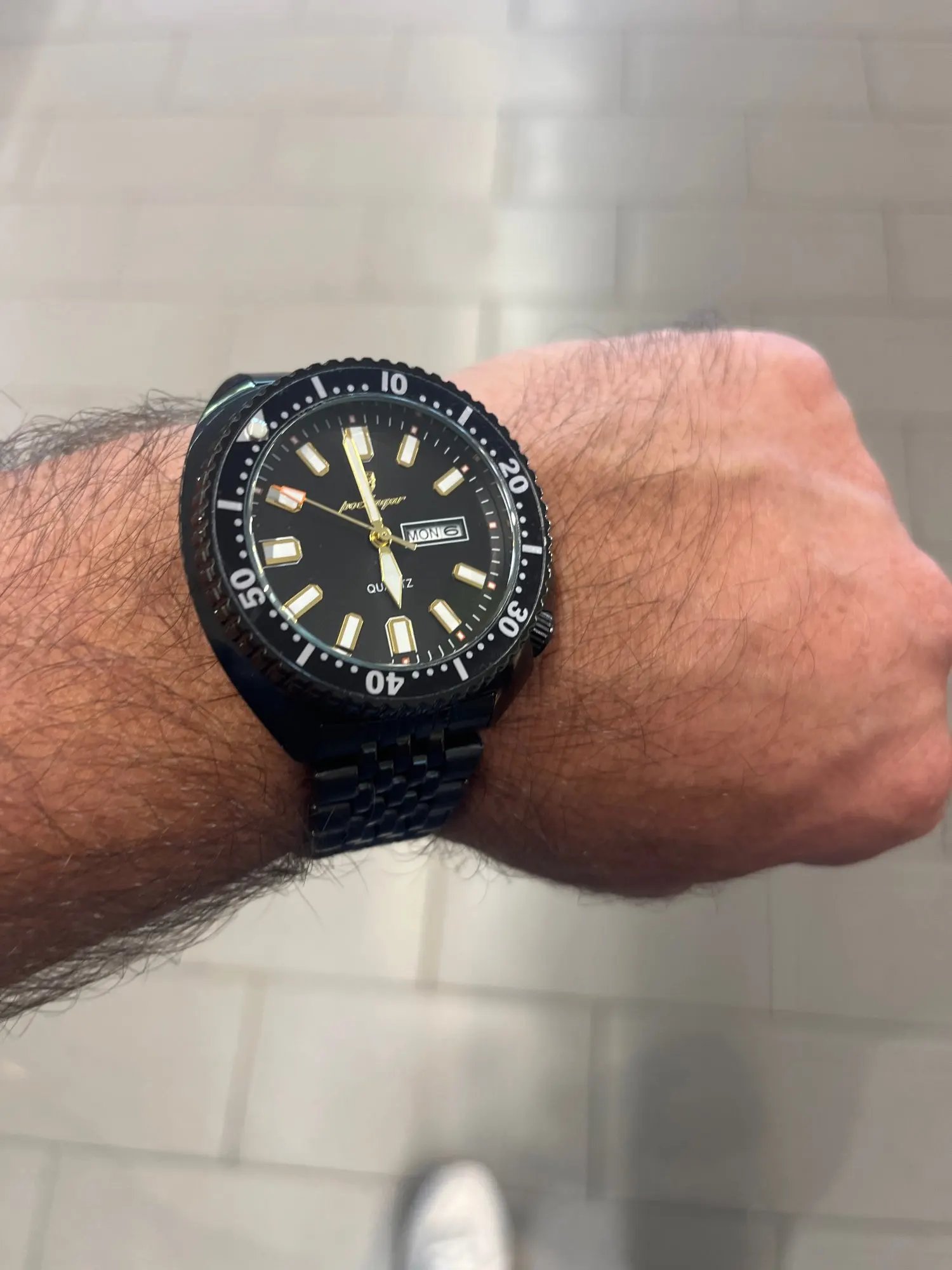 I really like this watch it even has a rotating basil for the money. It’s a decent looking watch and you don’t have to worry about scratching it up. I got many compliments on. It keeps great time.