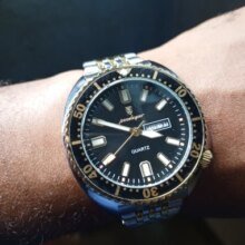 Incredible value for the price! Great seiko capt. Willard homage. This does not look or feel like an $18 dollar watch. Ok, the bracelet is a little light, and the bezel has some play, but it looks amazing. The watch head itself is sufficiently weighty and doesn't feel cheap. The dial looks great and really like that it has day and date. Getting to position 1 to set the day and date is easy to find, and there is no movement of the minute hand when pushing in the crown after setting the time. The lume is surprisingly good! It's very bright on the hands (including the second hand) and the indices, and it lasts longer than i expected, especially at this price. The butterfly clasp means no micro adjustment, so the fit on my wrist is a little tight but not uncomfortable. I was planning to swap a rubber or nato strap to be truer to the military heritage, but this "5-link" style bracelet looks really nice and catches light beautifully. I highly recommend!