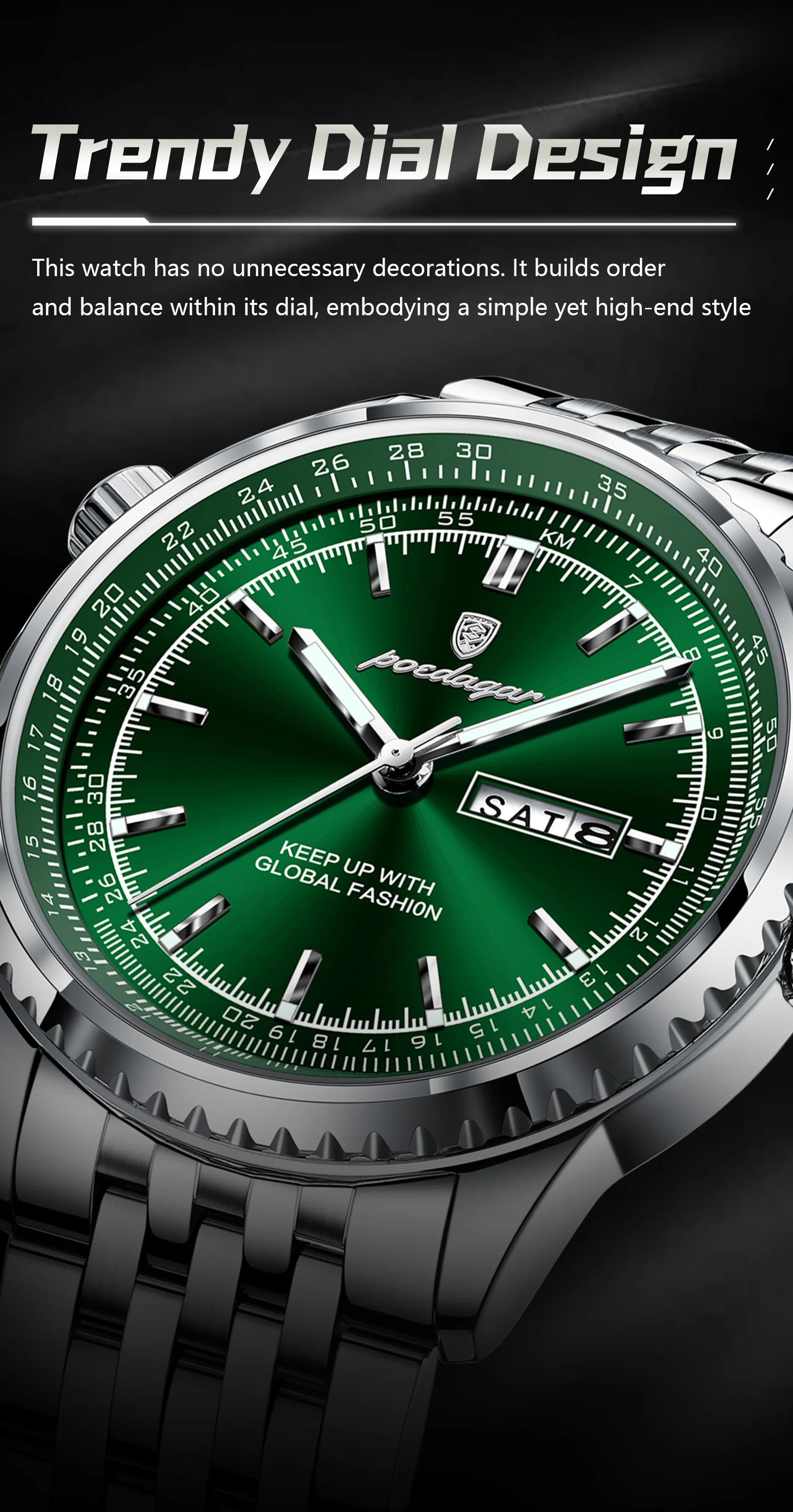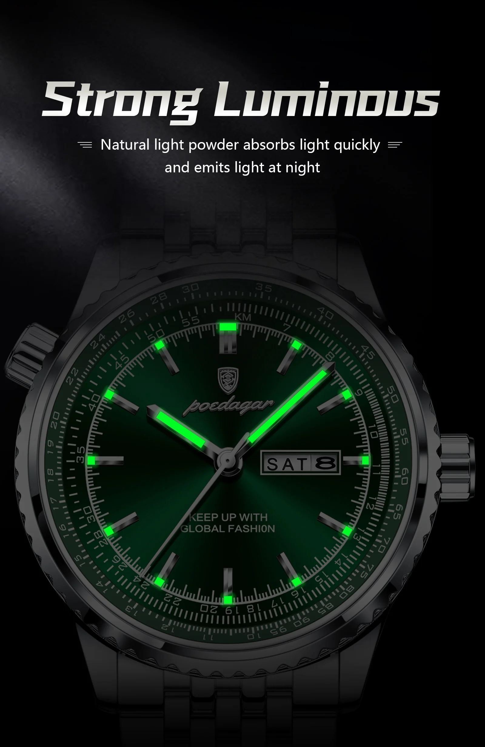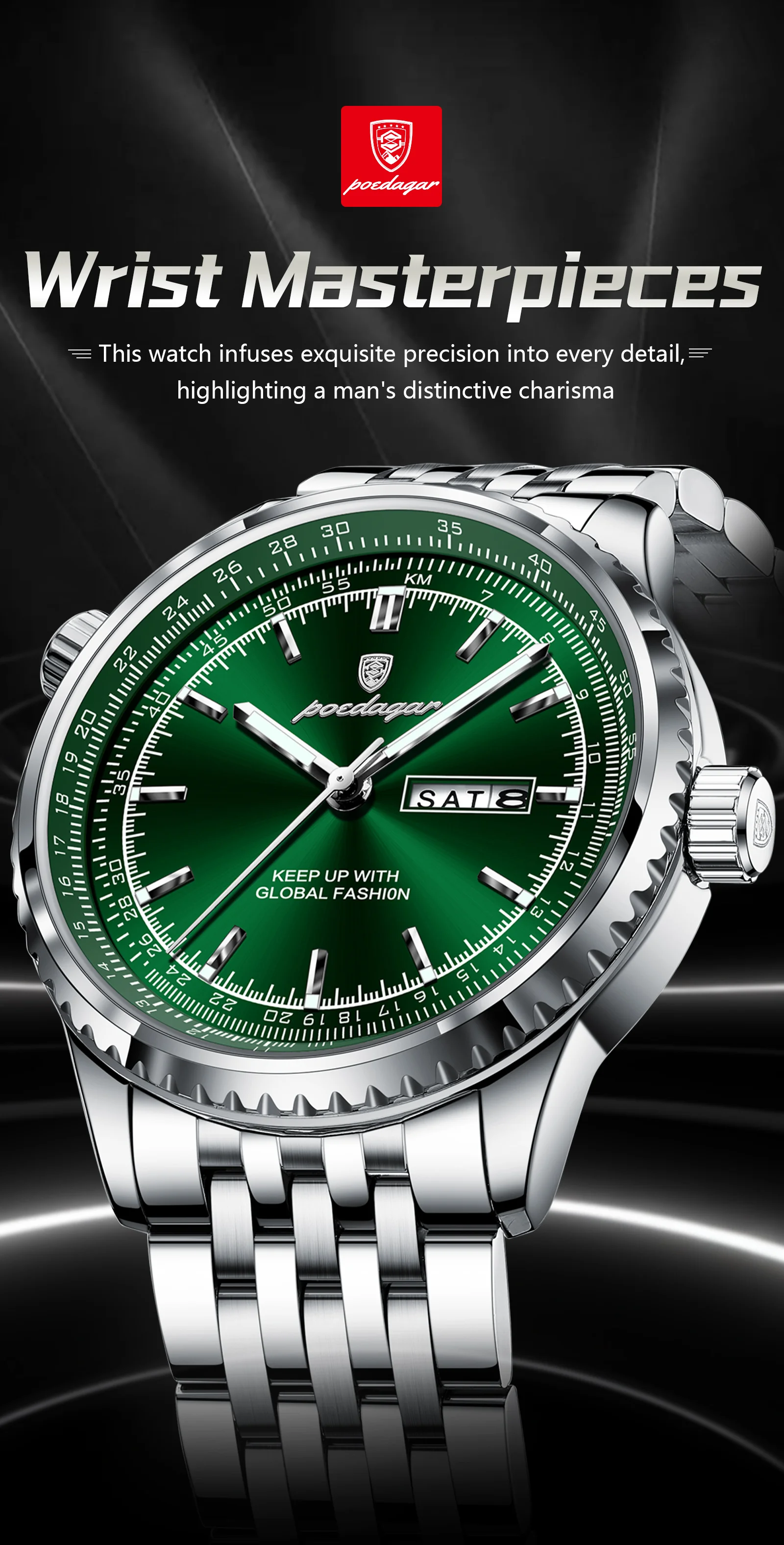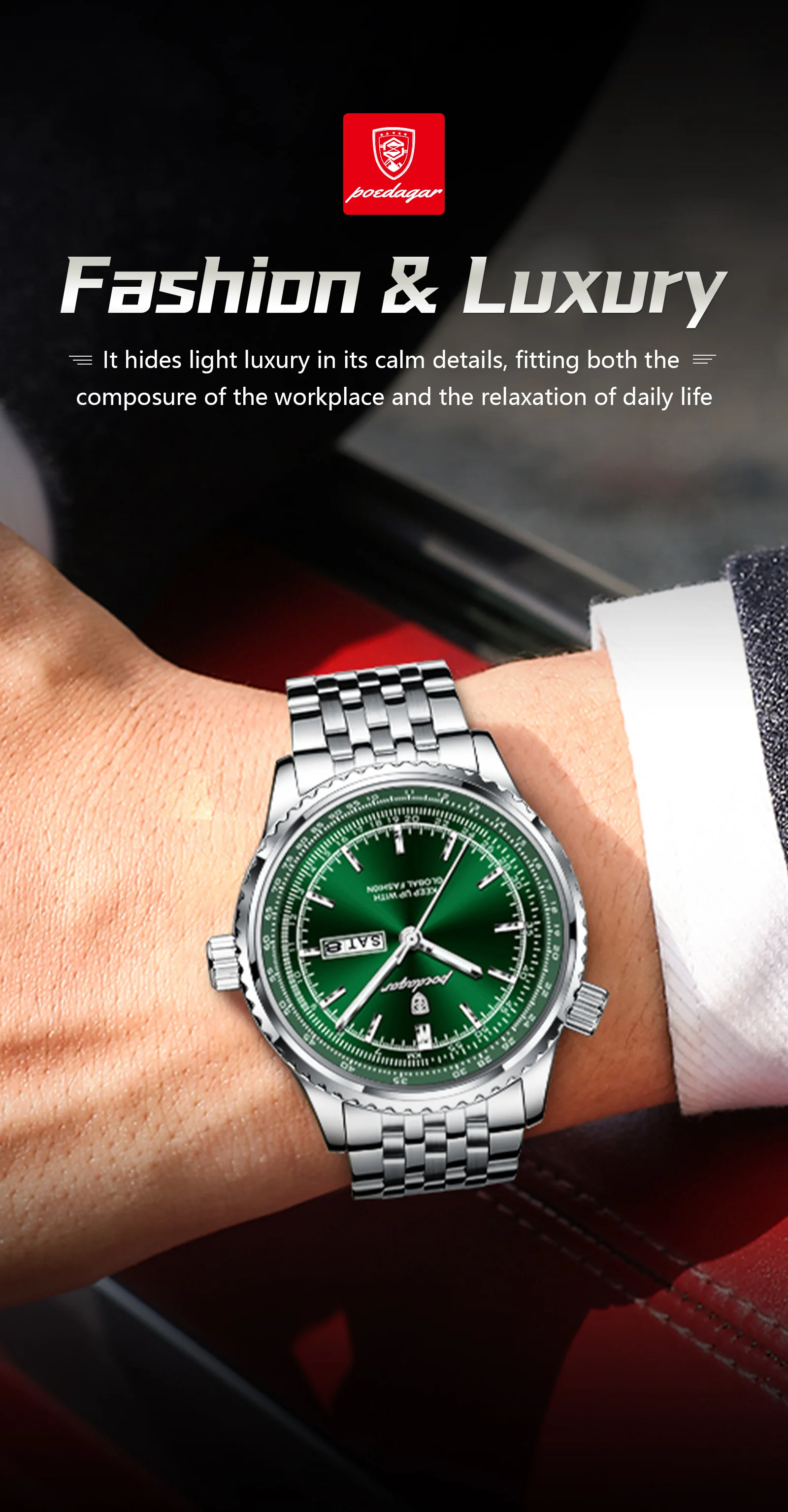 Poedagar Commander Stainless Steel Luminous Quartz Men’s Watch