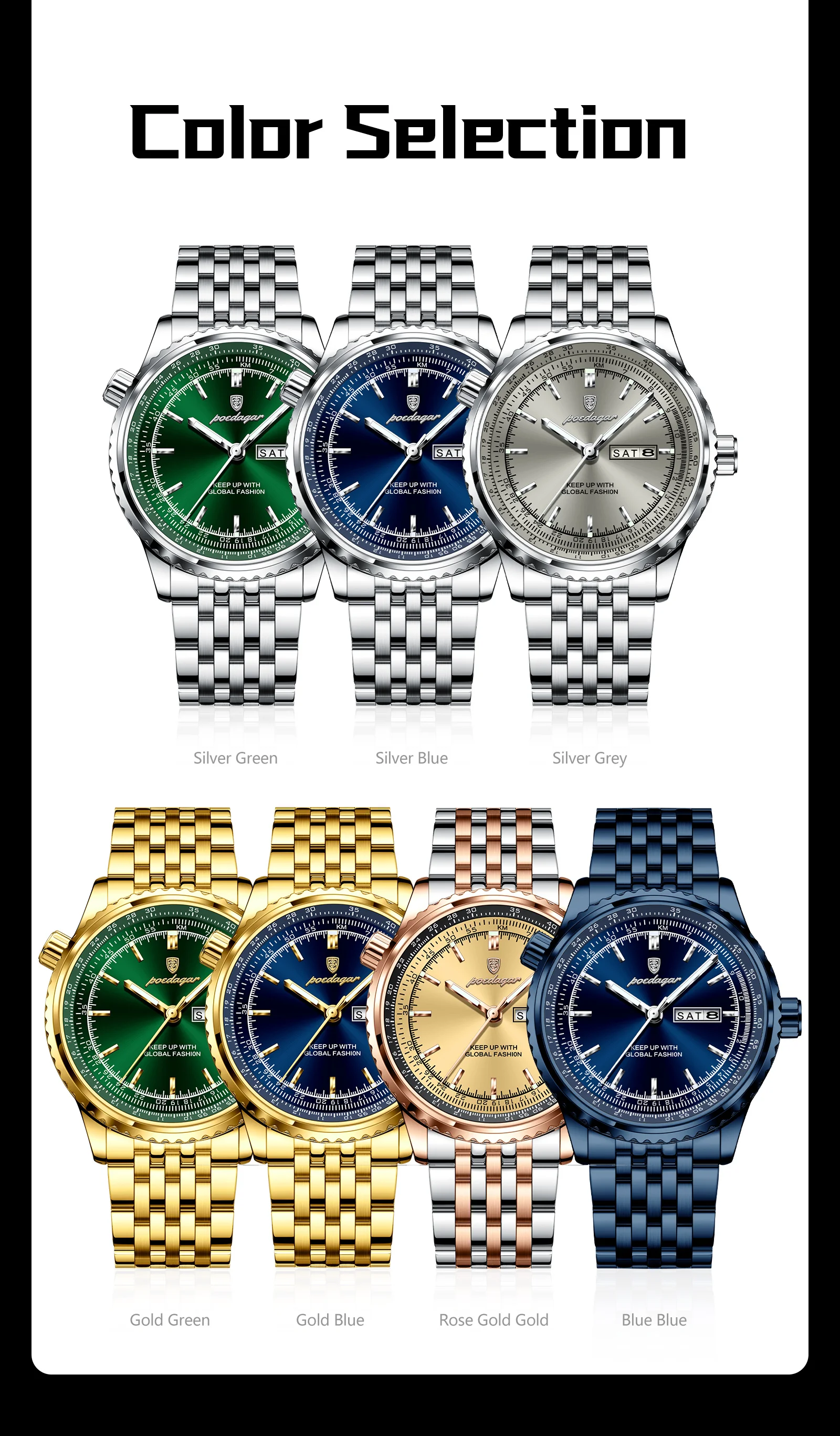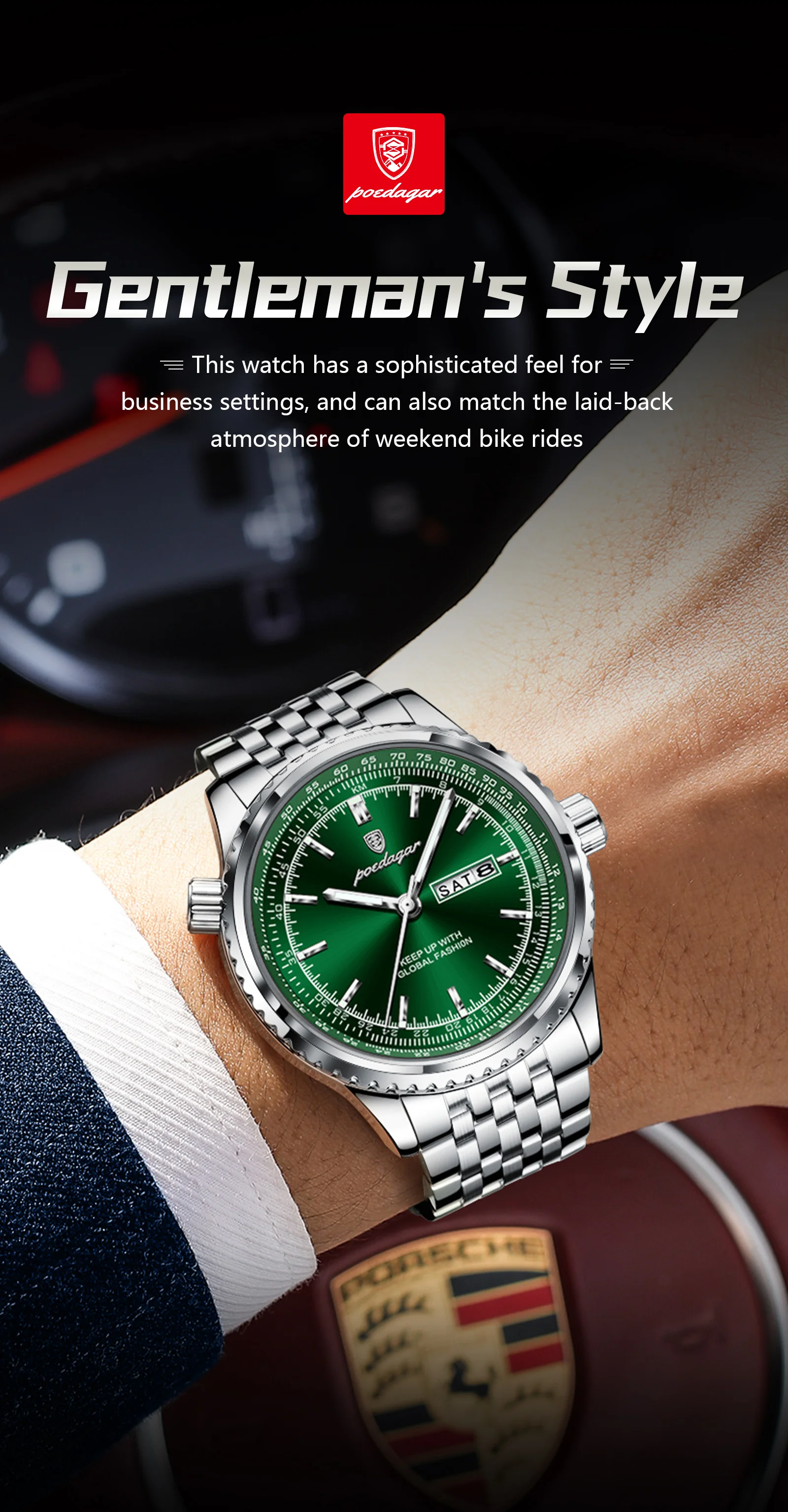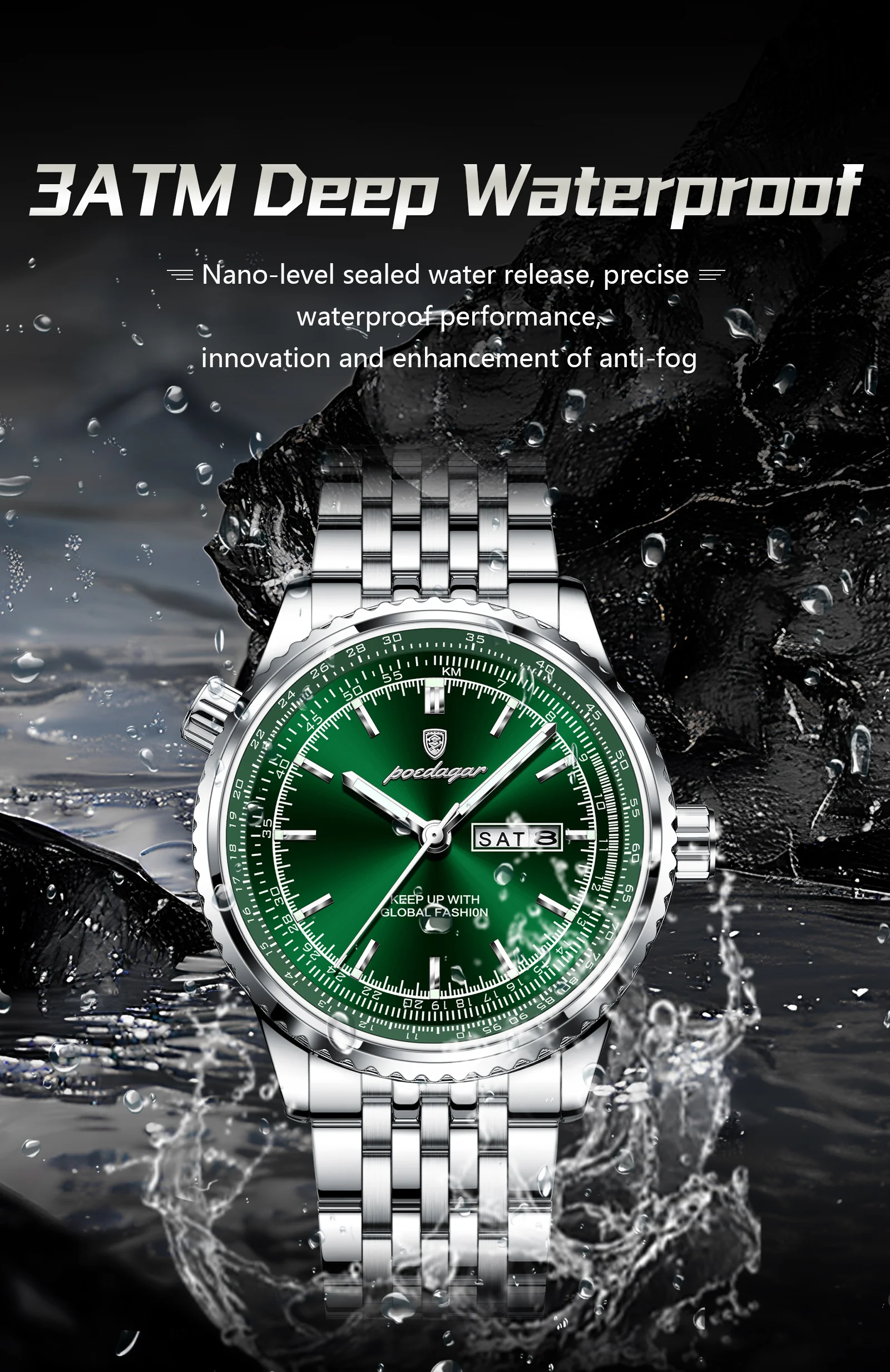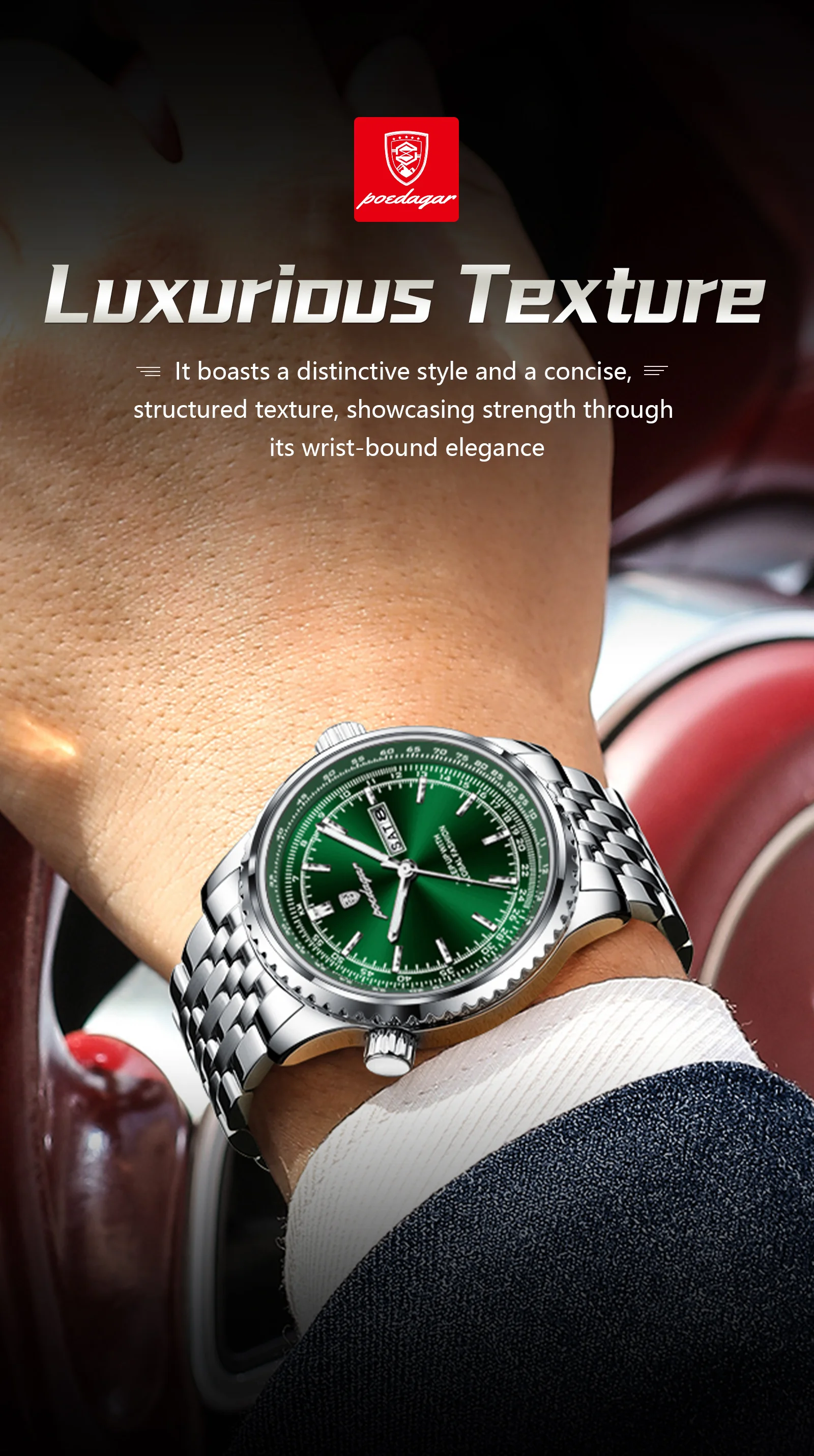 Poedagar Commander Stainless Steel Luminous Quartz Men’s Watch