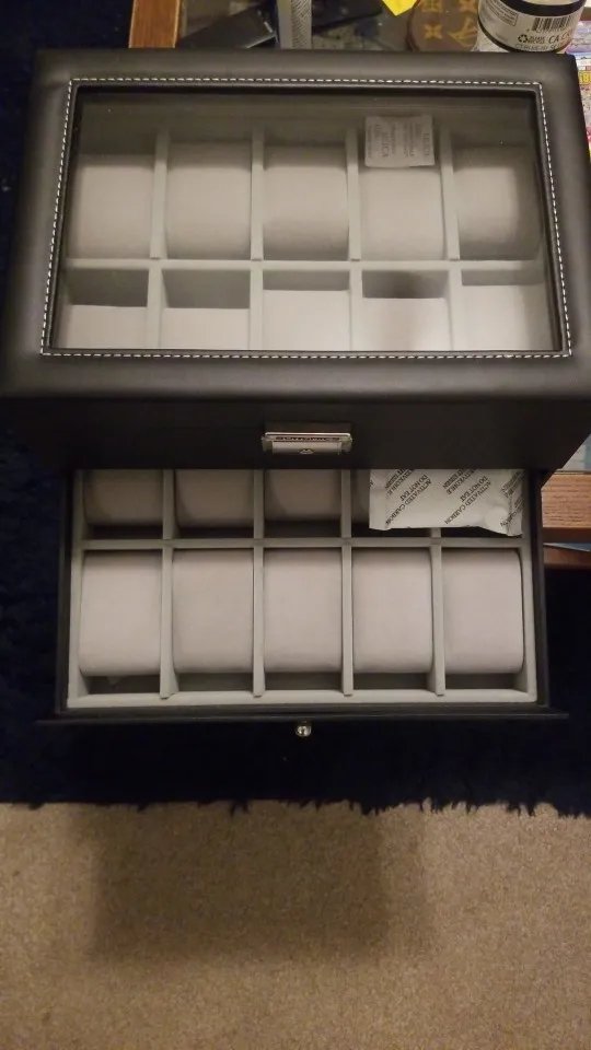 Great 20 slot watch case! 💯 I have the 24 also and both are good quality for the price and do come with 2 keys each for safe keeping! 😎