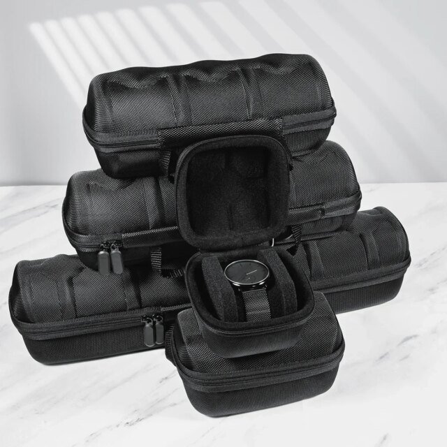 - 5-slot hard roll – 13.6″L × 3.77″ W × 3.15″H (347 × 96 × 80 mm); holds 5 watches, 1–5 slot versions also available.