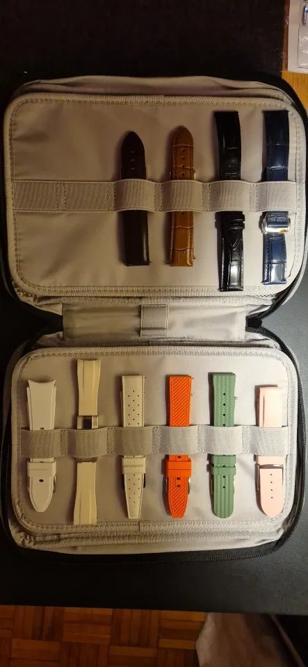 360° Protection: The watch band storage box is made of spill-resistant nylon material, and the inside is filled with a soft cushioning panel to prevent scratches and prevent external collisions from damaging the watch band, And dust pollution .